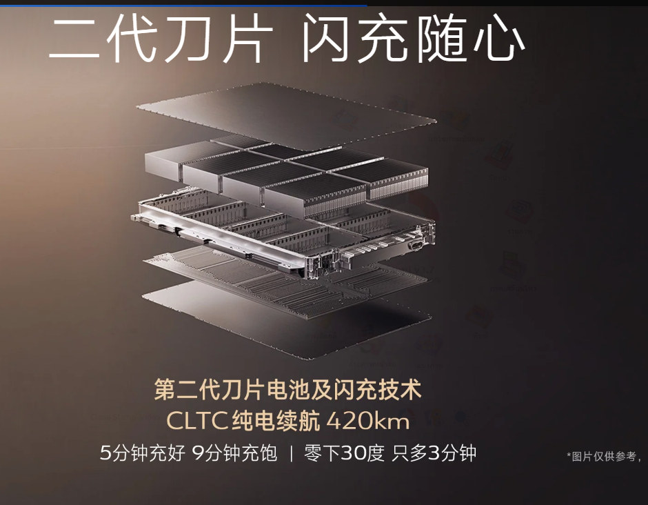 ไฮไลต์สำคัญของรุ่น Flash Charge Edition คือการติดตั้ง Blade Battery 2.0 จาก FinDreams (บริษัทลูกของ BYD) ซึ่งเป็นการอัปเกรดครั้งใหญ่จากรุ่นเดิม: