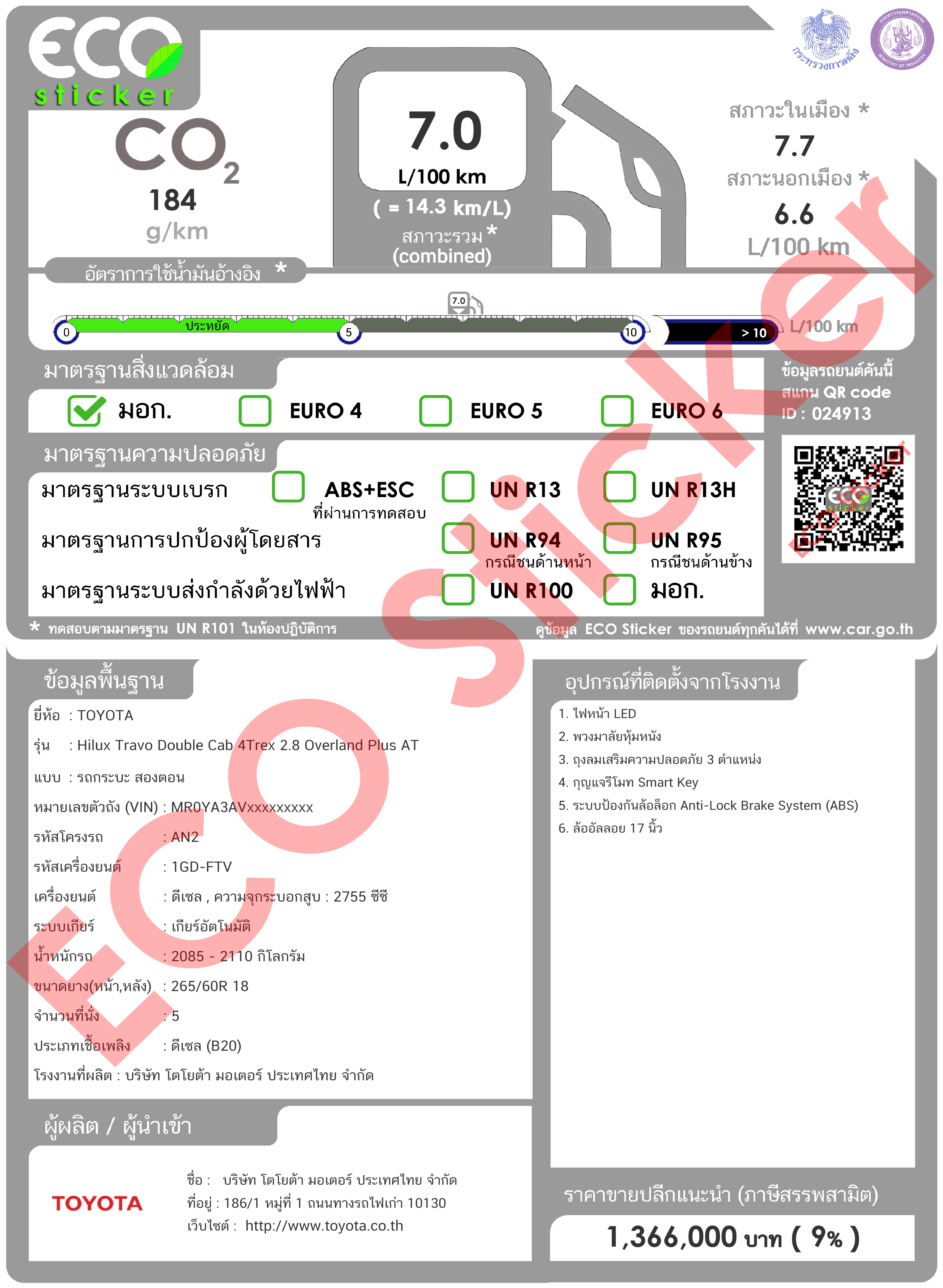 ประหยัดขึ้น 7.5% สูงสุด 14.3 กม./ลิตร ในรุ่นท๊อป 1GD-FTV ขุนพลดีเซลเทพ 2.8 จาก TRAVO ใหม่