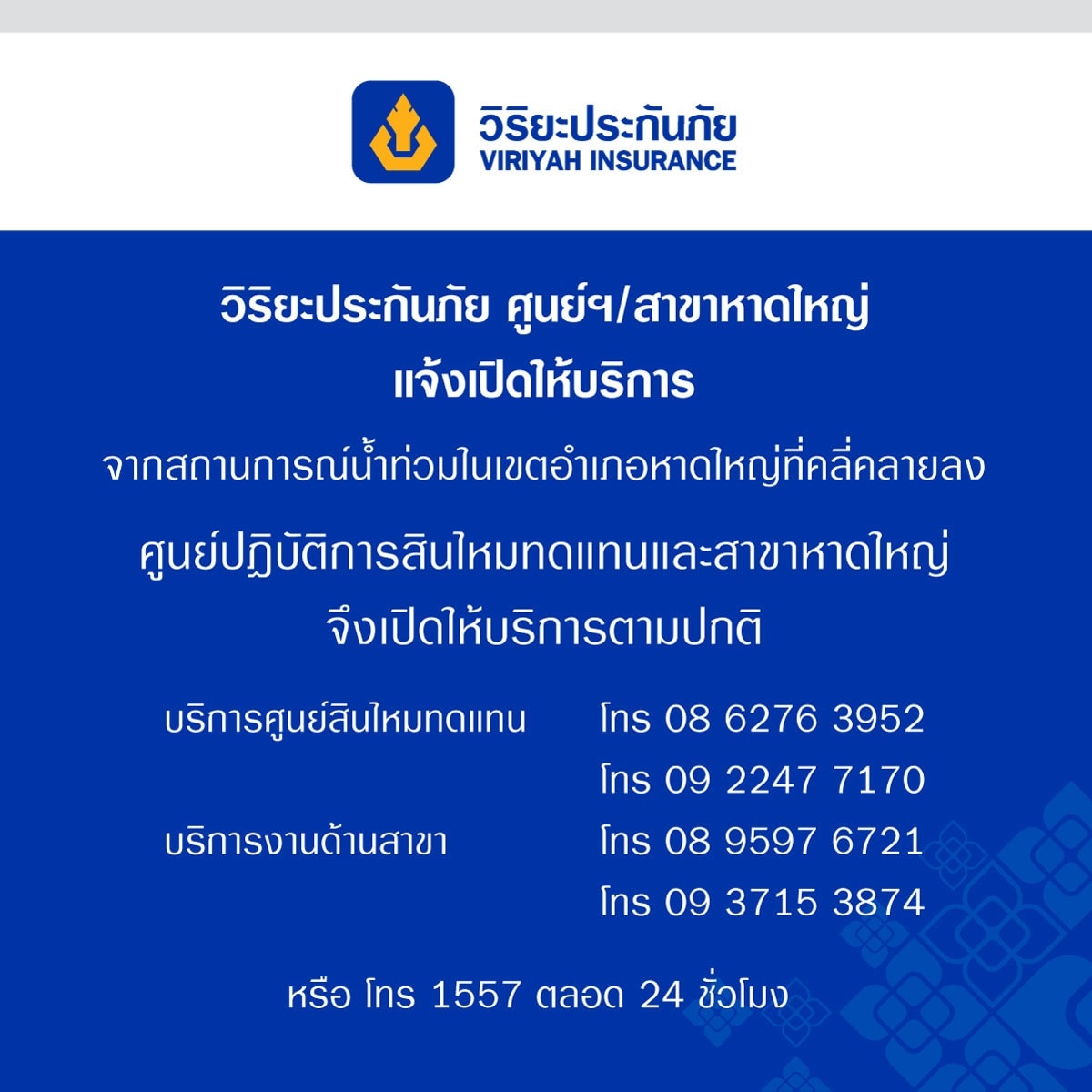 - สายด่วนวิริยะประกันภัย 1557 (ตลอด 24 ชั่วโมง)