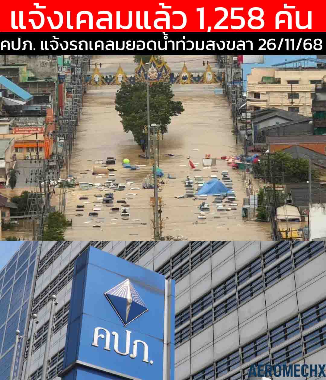 - รถยนต์แจ้งความเสียหายแล้วจำนวน 1,258 คัน