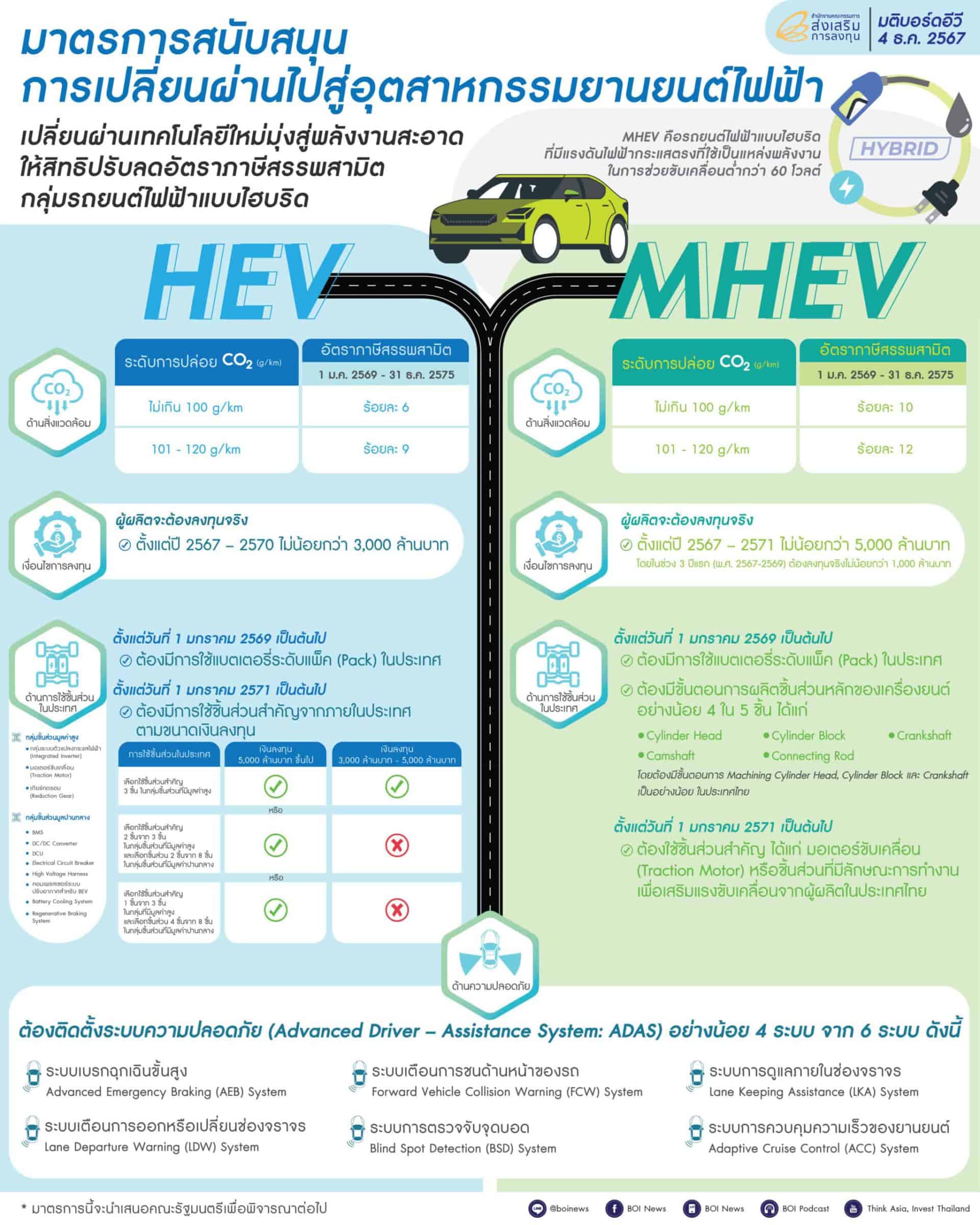 จุดนี้เป็น “ไฮไลต์เชิงนโยบาย” เพราะเอกสารภาครัฐระบุชัดว่า ตั้งแต่ 1 ม.ค. 2569 จะกำหนดพิกัด PHEV แยกจาก HEV และให้น้ำหนักกับระยะวิ่งไฟฟ้าเป็นแกนหลักในการส่งเสริมการพัฒนาเทคโนโลยี PHEV.