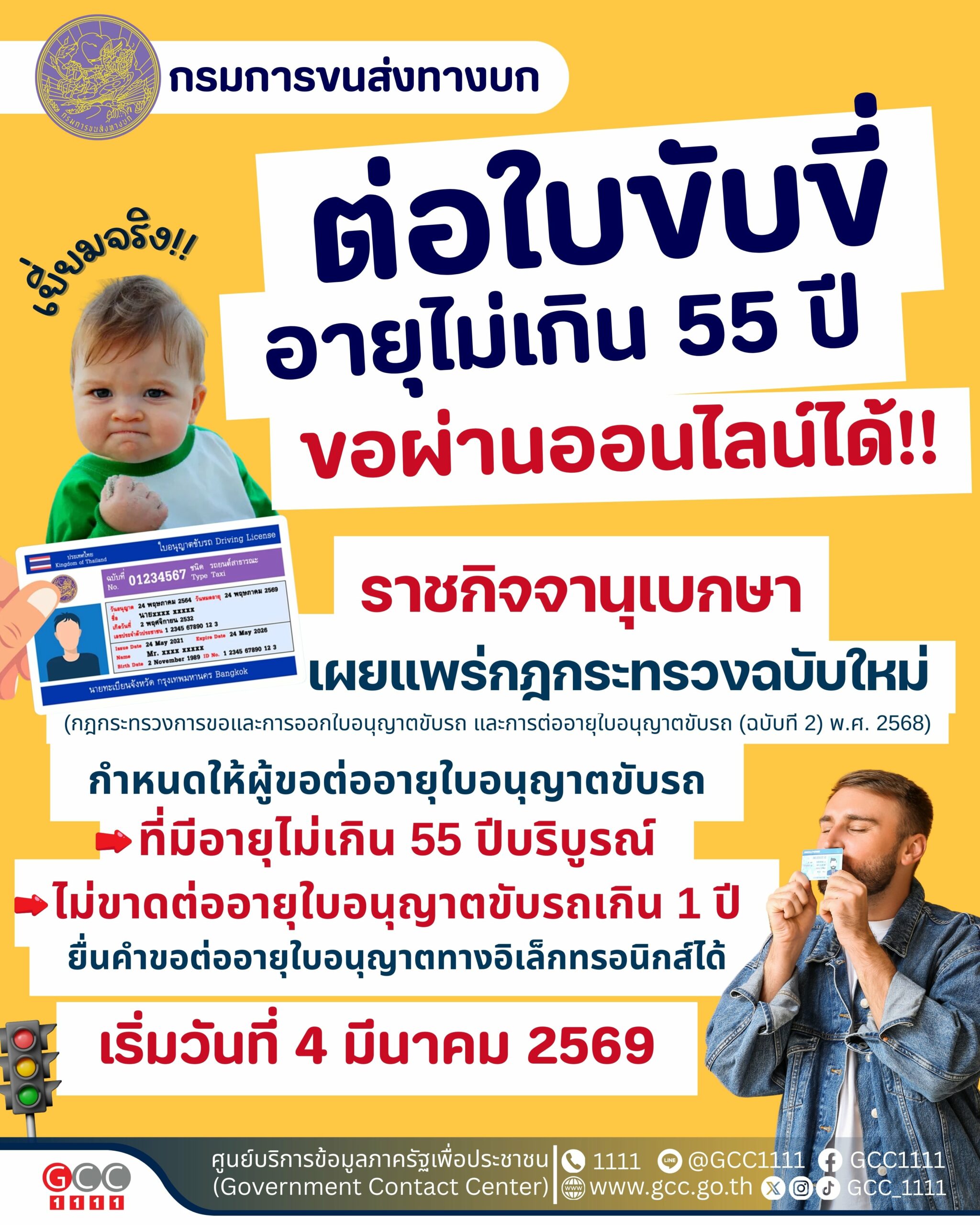 ต่อใบขับขี่ออนไลน์ได้ เริ่ม 4 มี.ค. 2569 กลุ่มอายุต่ำ 55 ปี ขาดไม่เกิน 1 ปี ไม่ต้องทดสอบสมรรถนะร่างกาย