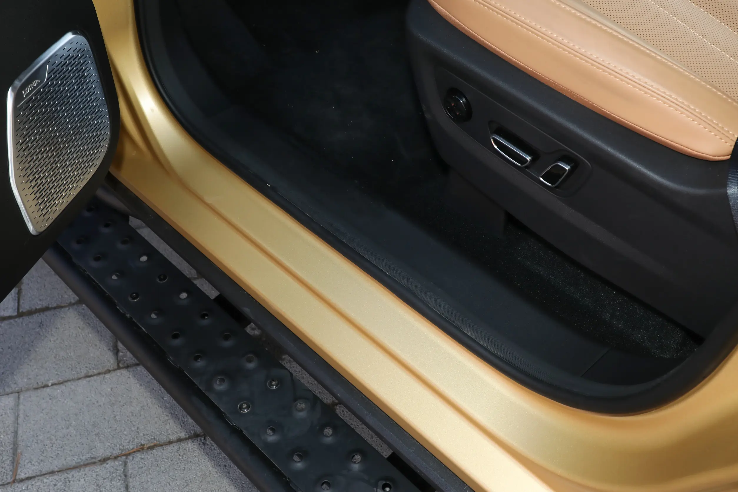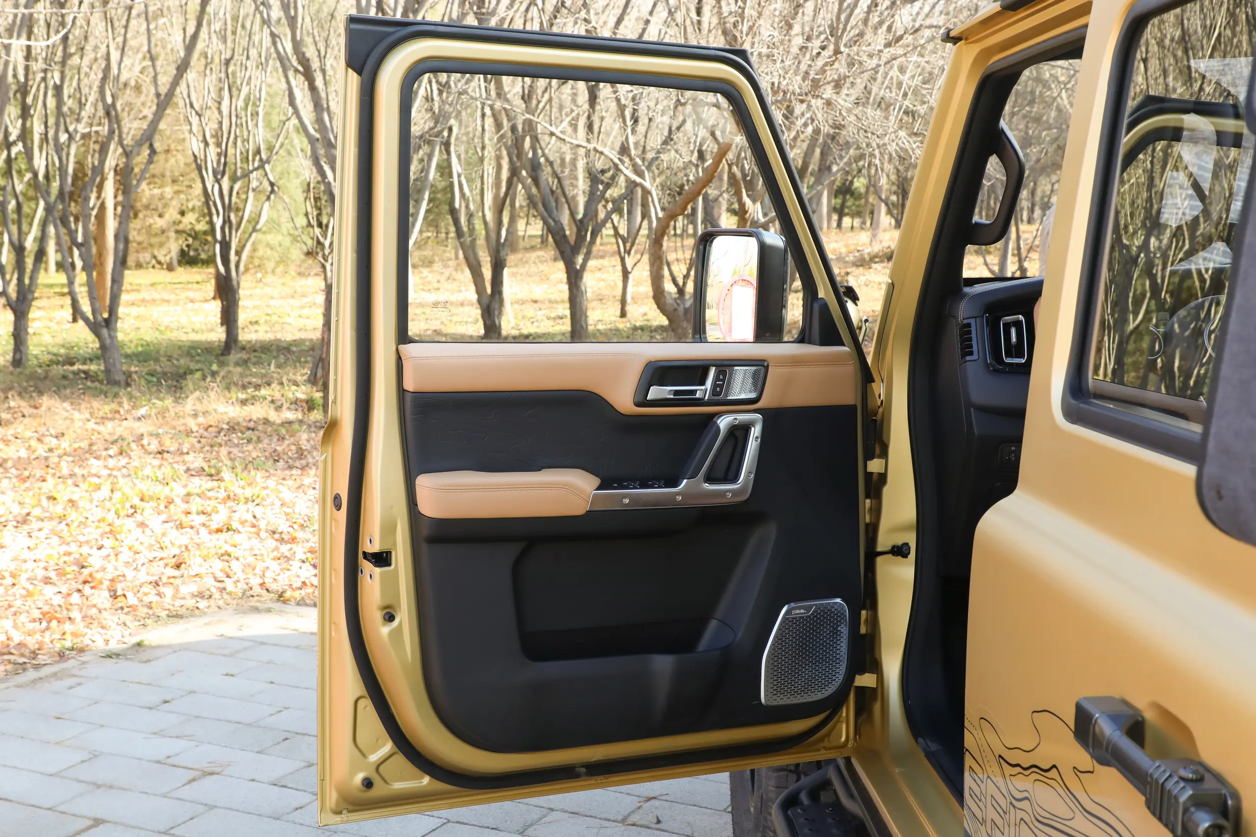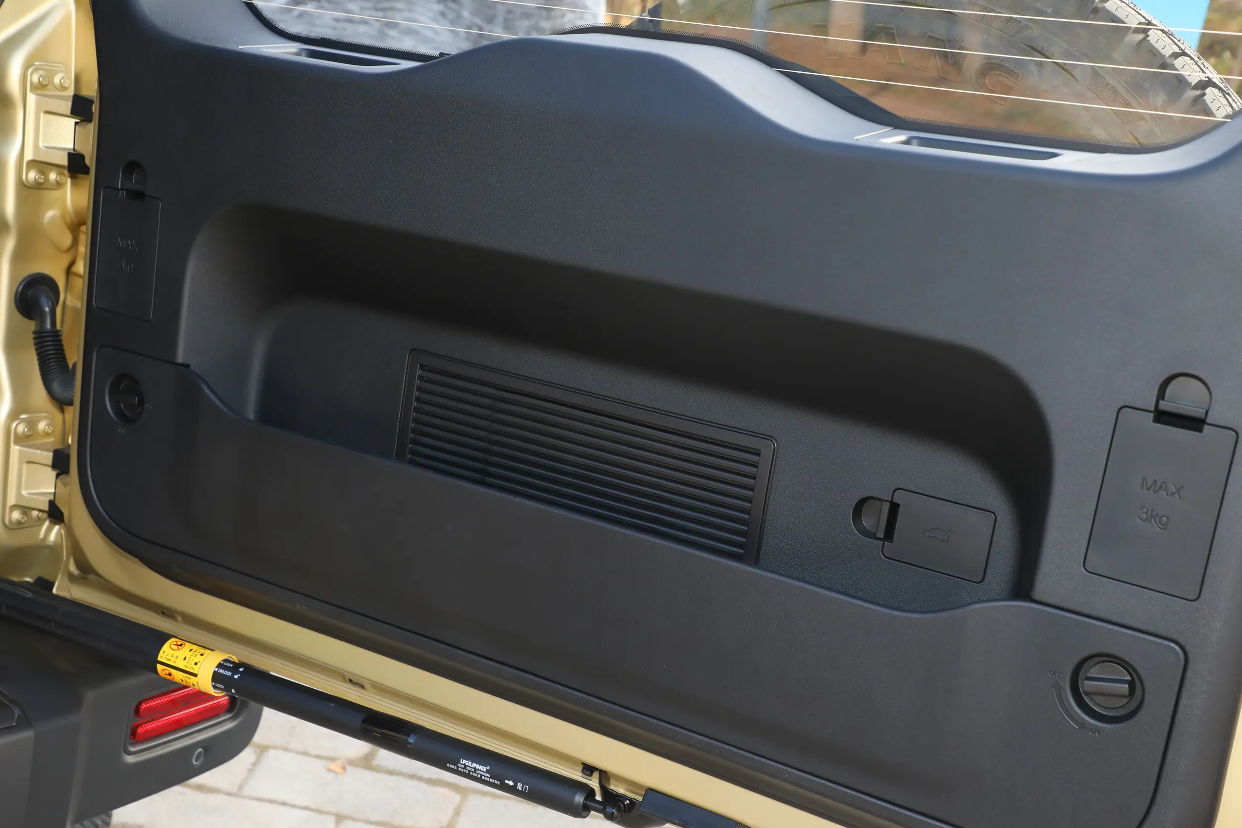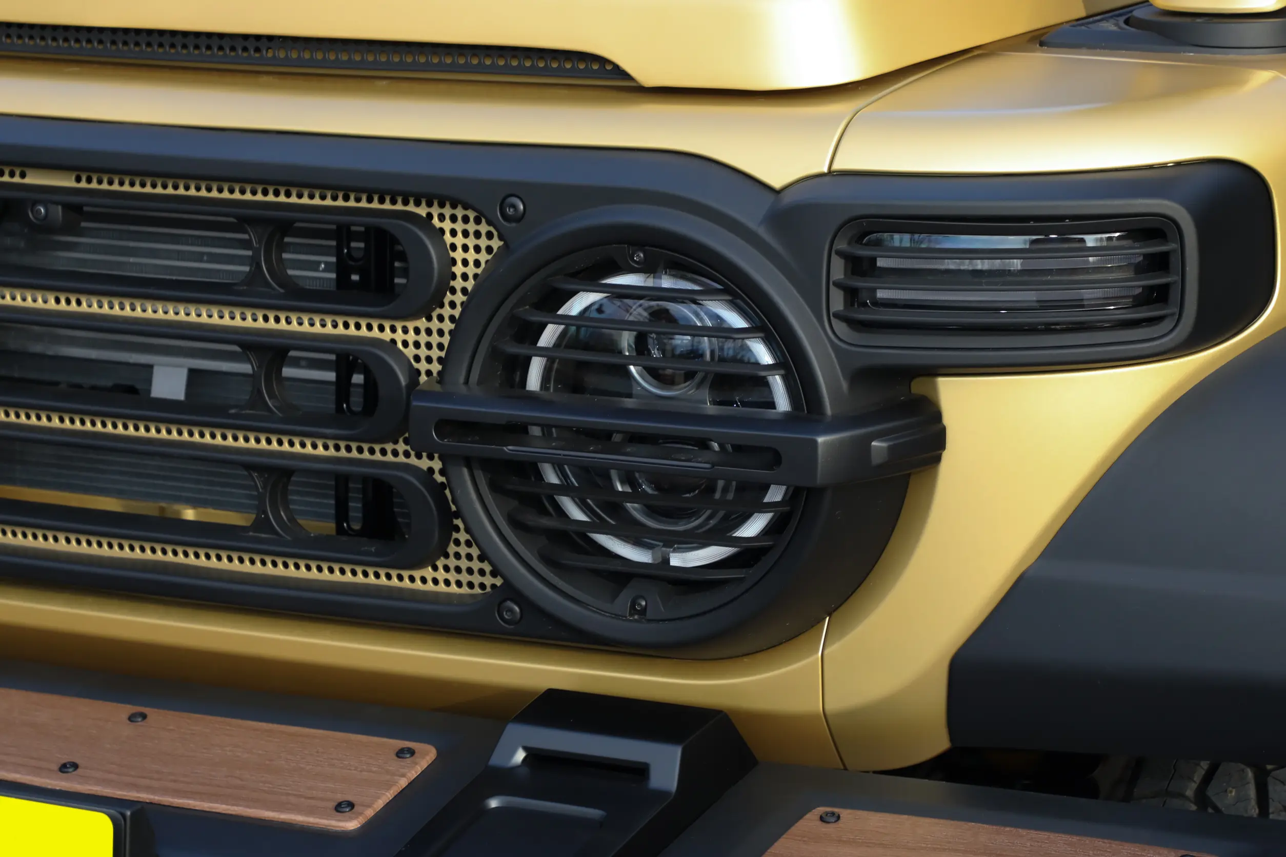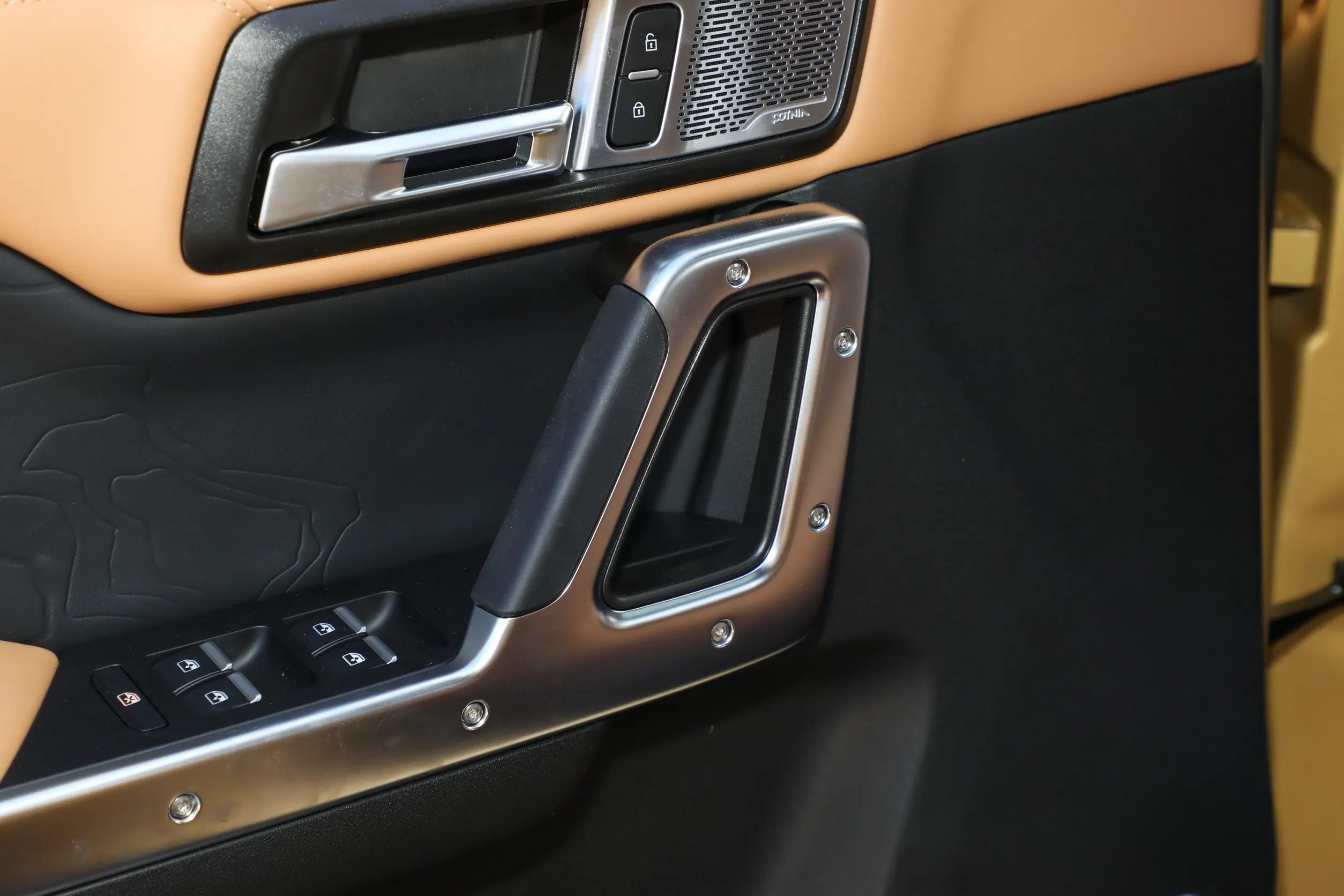 บริเวณด้านข้างตัวรถมาพร้อมท่อหายใจสำหรับลุยน้ำ (Snorkel) ช่องดักอากาศบนฝากระโปรงหน้า และบันไดข้างโลหะ เสริมด้วยโครงสร้างกันกระแทกแบบแข็งบริเวณด้านล่างประตู ผสานกับการออกแบบยางอะไหล่แบบแขวนภายนอกที่ซ่อนไว้อย่างแนบเนียน ช่วยเพิ่มทั้งความดุดันทางสายตาและความแข็งแกร่งในการใช้งานบนเส้นทางสมบุกสมบัน
