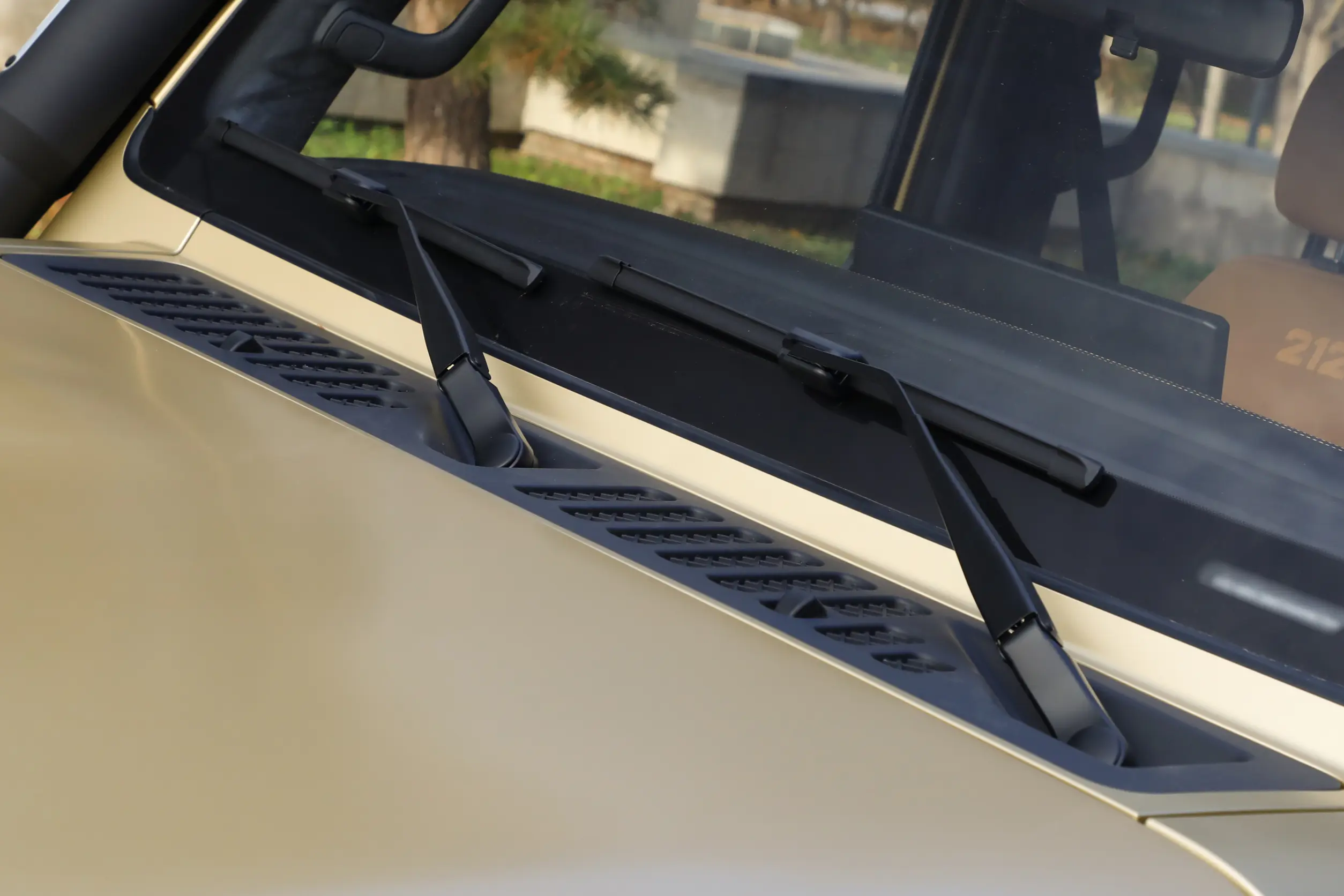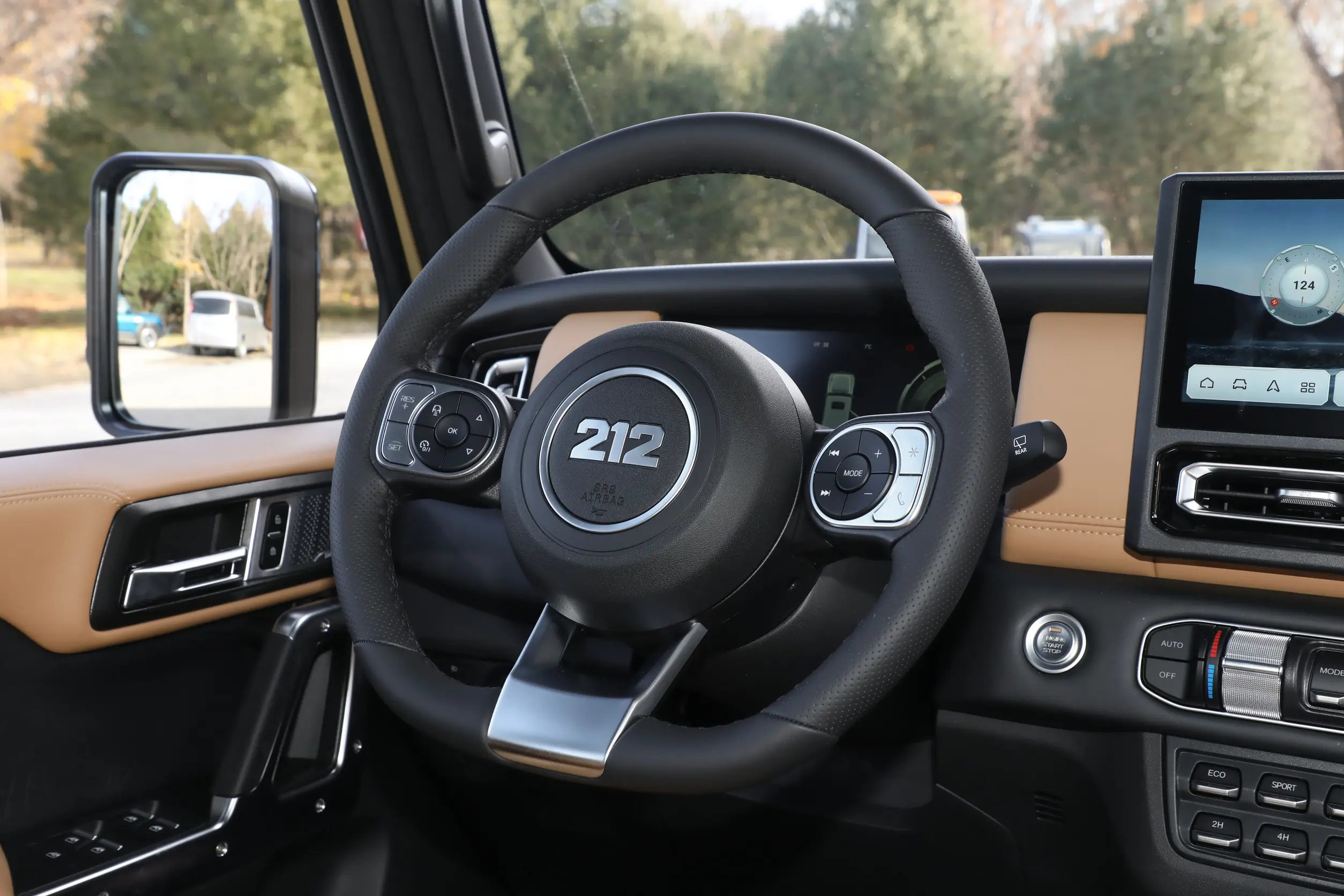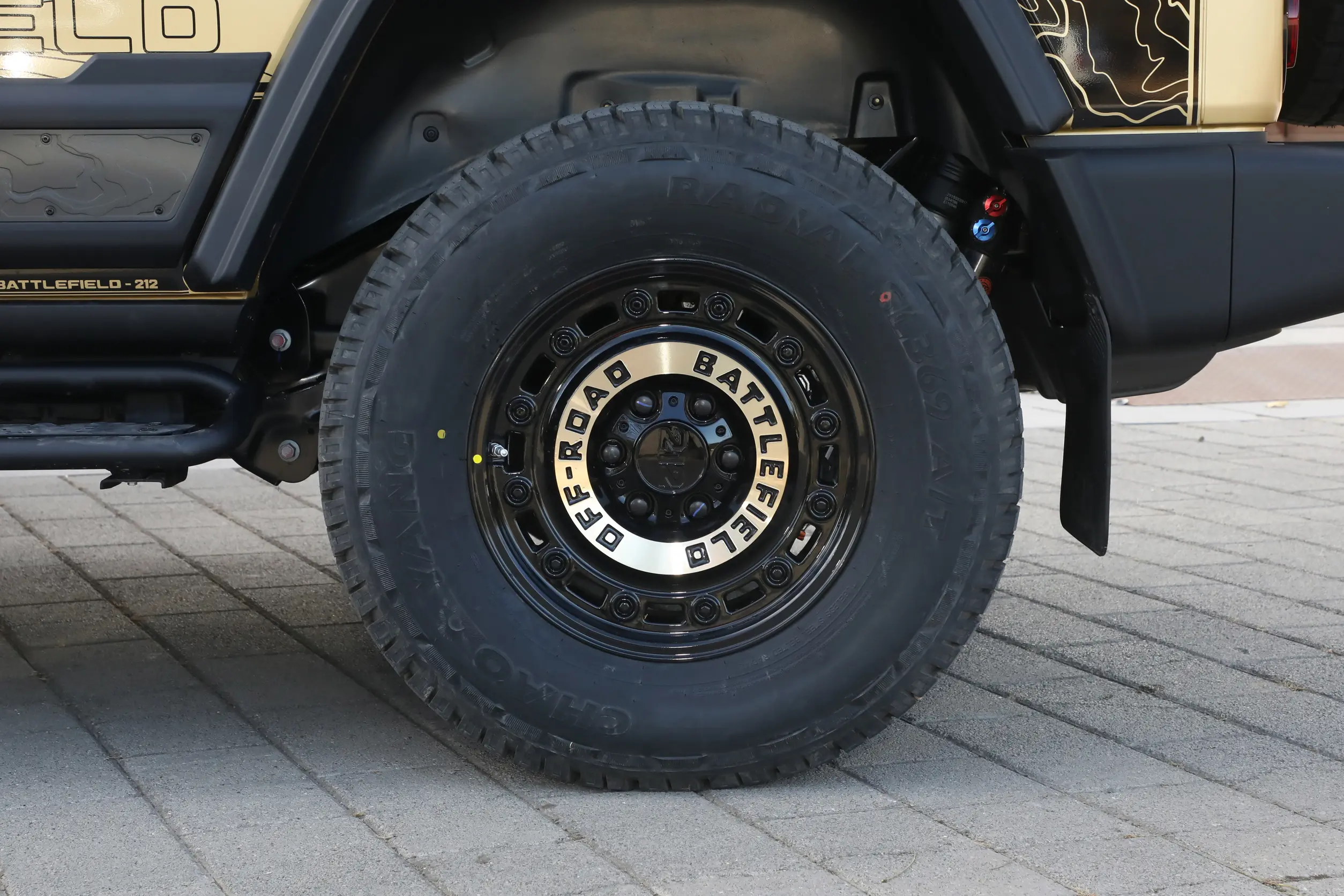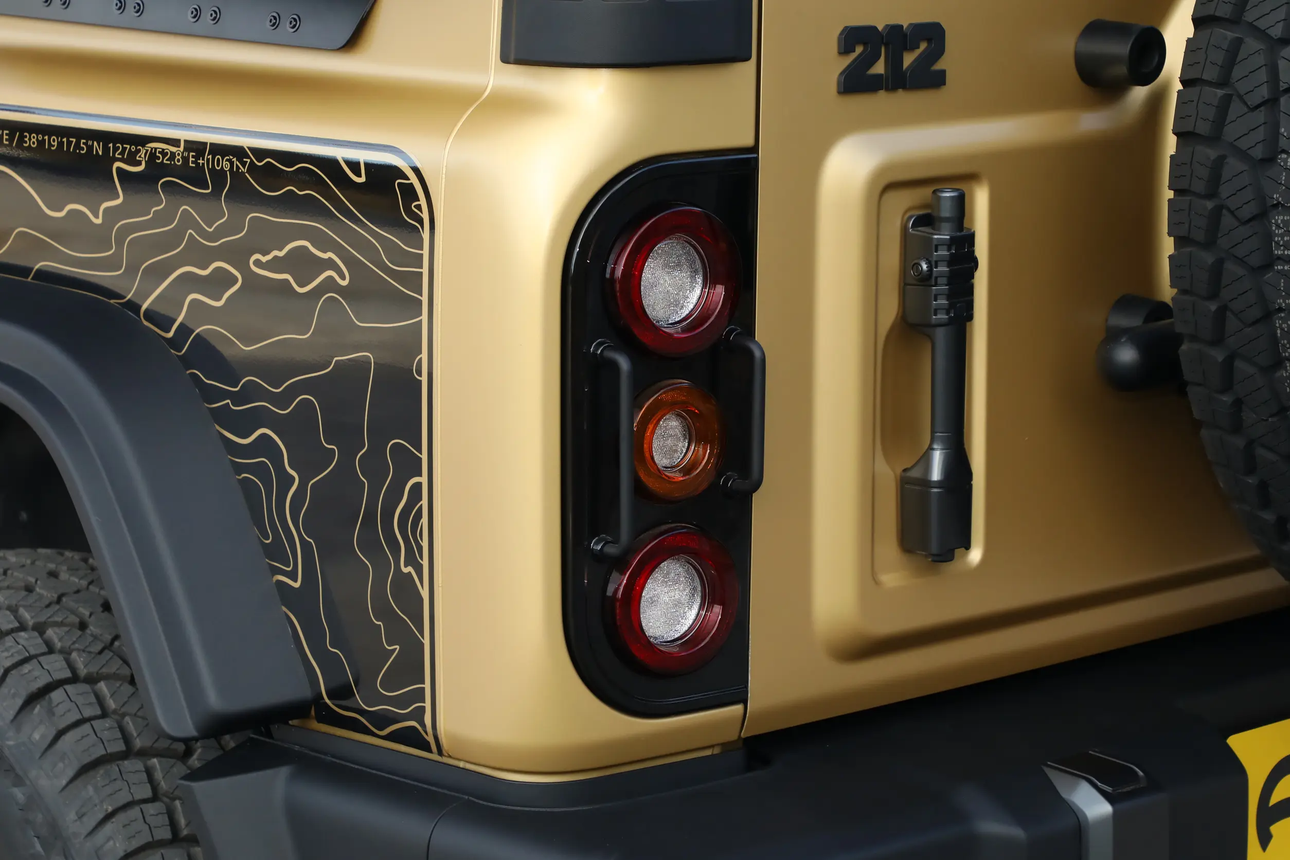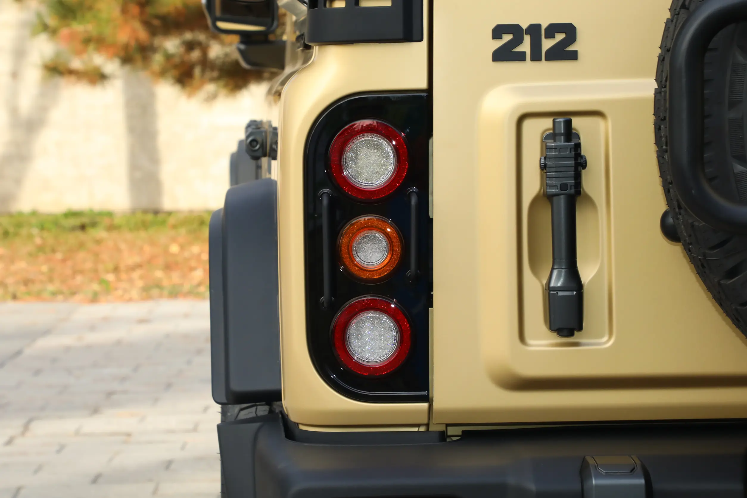 • การออกแบบภายนอก: คงเอกลักษณ์คลาสสิกของ 212: ฝากระโปรงแบบ Clamshell, ไฟหน้า LED ทรงกลมแยกส่วนพร้อมเลนส์, กระจังหน้าสามส่วน, กระจกหน้าและที่ปัดน้ำฝนแบบย้อนยุค มีเส้นสายตัวถังที่แข็งแรงทนทาน, กันชนหนา, และซุ้มล้อพลาสติกสีดำขนาดใหญ่ มียางอะไหล่ขนาดเต็มติดตั้งด้านท้ายรถ