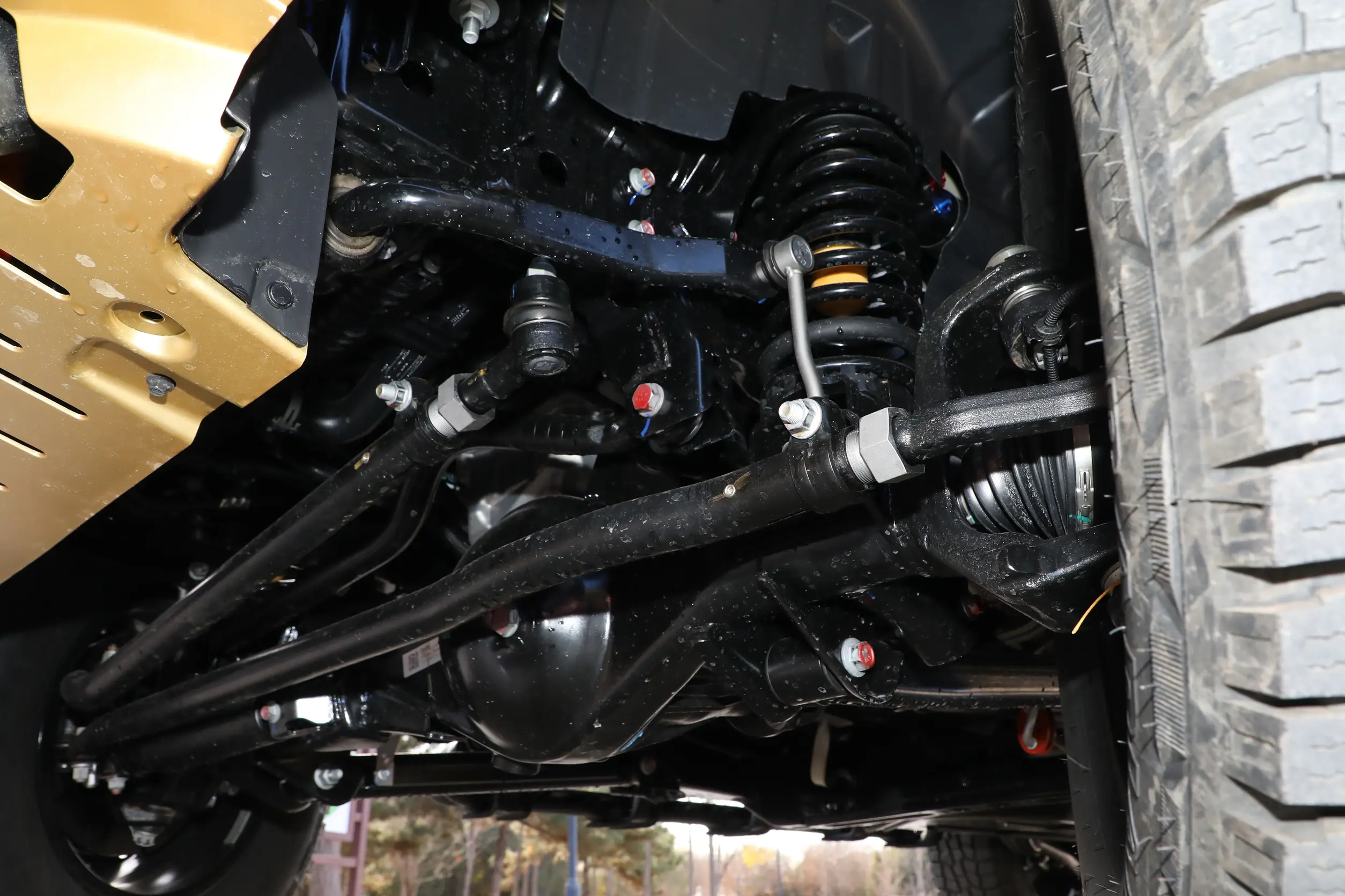 • ช่วงล่างหน้า: ระบบกันสะเทือนแบบ Five-link integral bridge non-independent (คานแข็ง)
