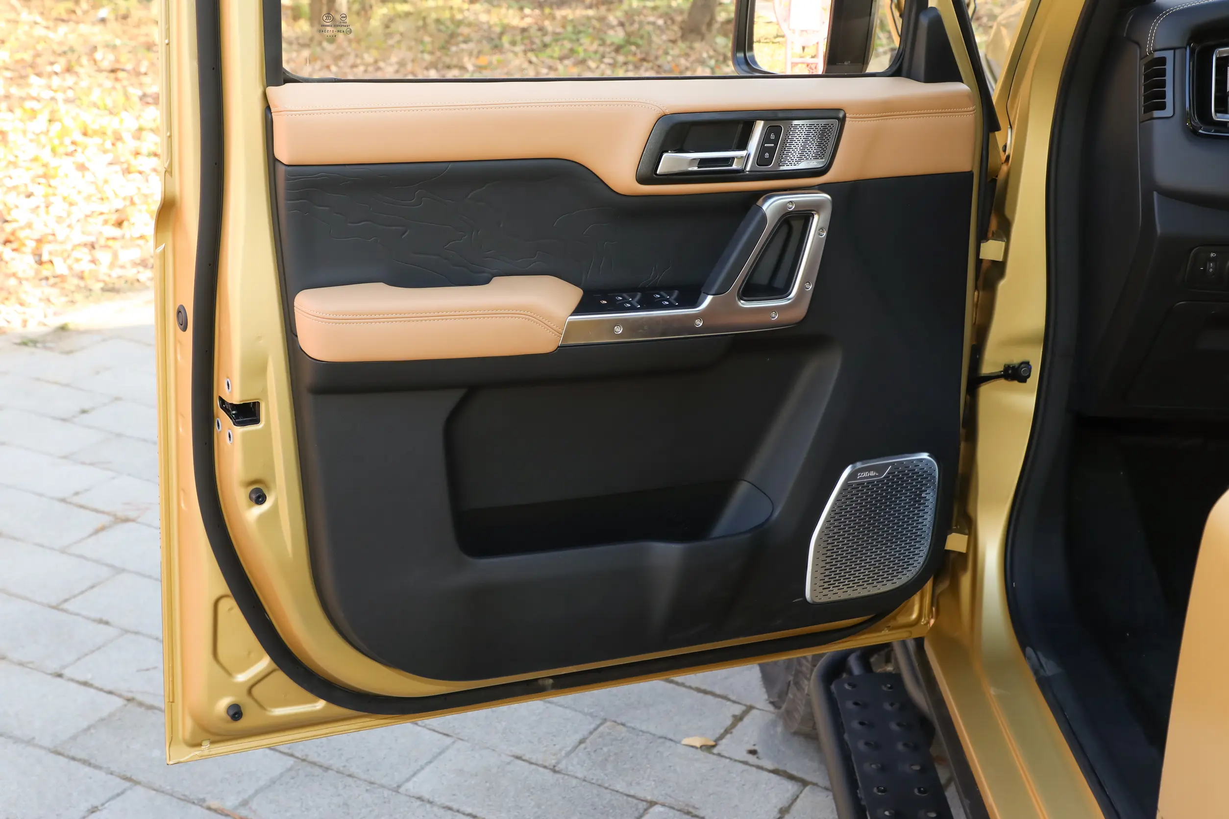 ภายในห้องโดยสารออกแบบภายใต้แนวคิด Functionalism เน้นการใช้งานจริงเป็นหลัก โครงสร้างภายในยังคงความแข็งแรงและเรียบง่าย แต่เลือกใช้วัสดุและโทนสีเพื่อสร้างบรรยากาศสไตล์วินเทจ ด้านการรับประกัน แบรนด์ชูจุดขายด้วยนโยบาย “ดัดแปลงแล้วยังรับประกันเครื่องยนต์และเกียร์ตลอดอายุการใช้งาน” พร้อมแพ็กเกจ “ของแถมสายดัดแปลงจากโรงงาน” ช่วยคลายความกังวลของผู้ใช้ที่มักสูญเสียสิทธิ์การรับประกันเมื่อมีการปรับแต่งรถ