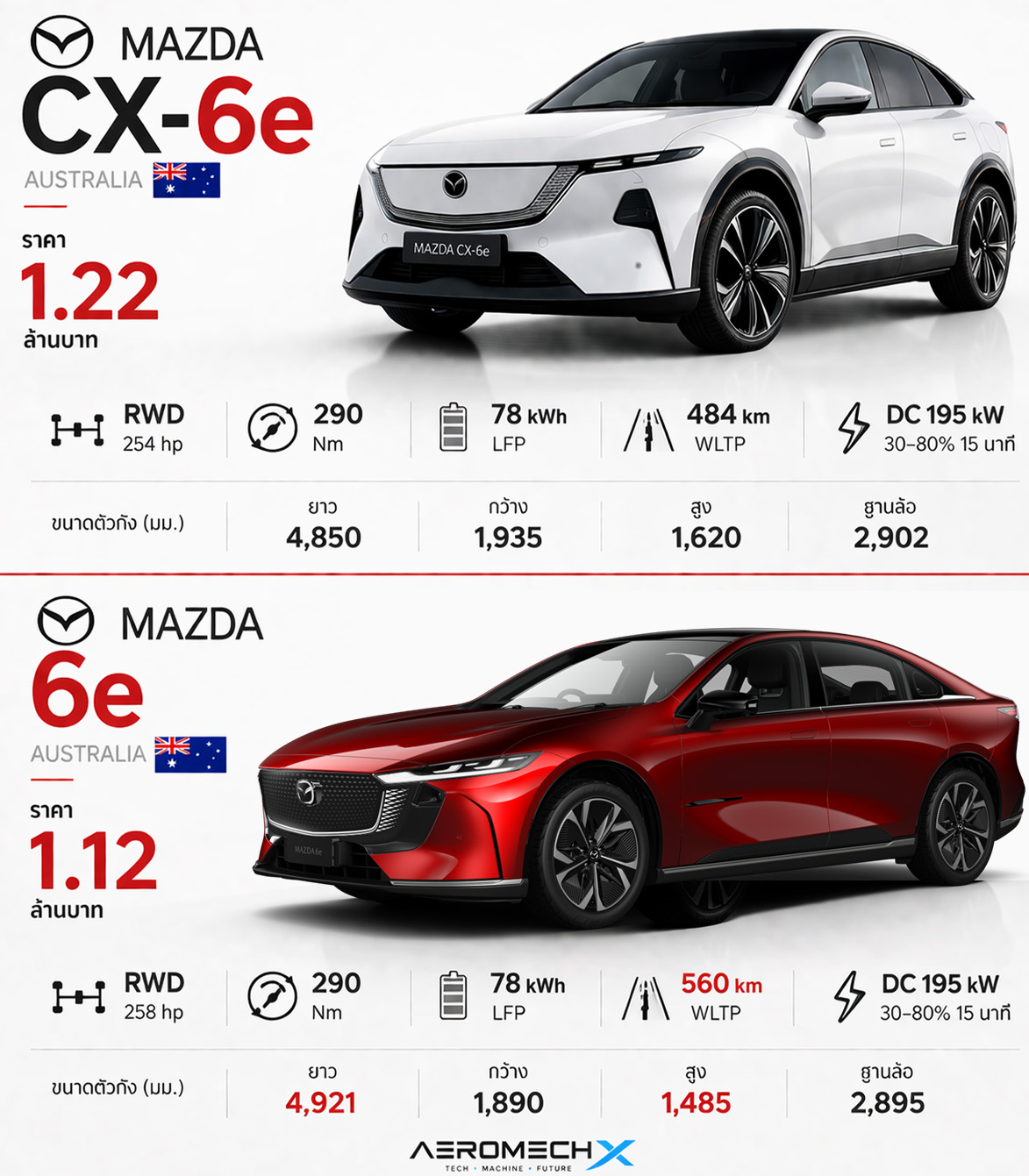 เปิดสเปกและราคา Mazda CX-6e 2026 เอสยูวีไฟฟ้า 100% รุ่นใหม่ในออสเตรเลีย เคาะราคาเริ่มเพียง 1.22 ล้านบาท!