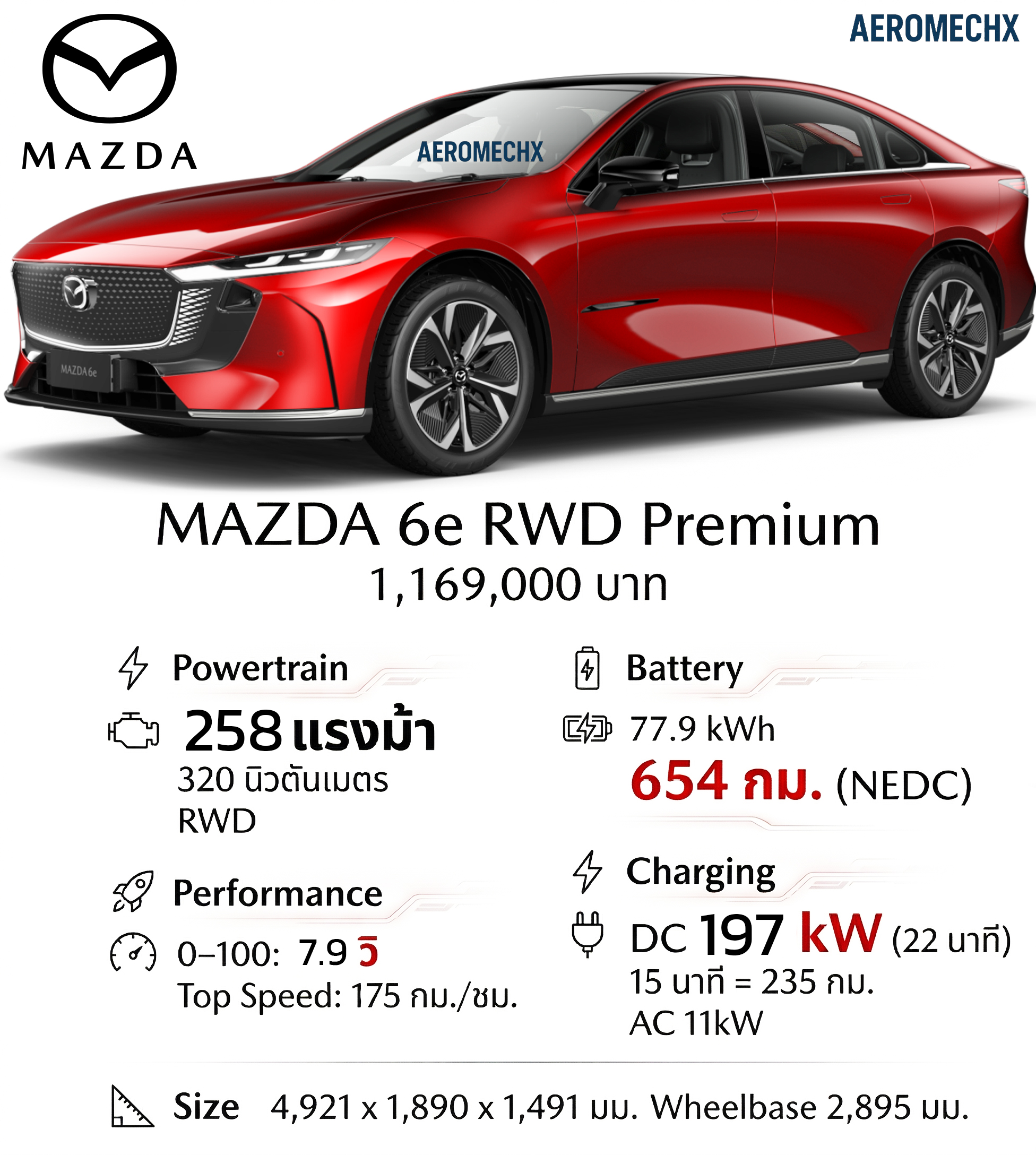 - Mazda 6e Long Range RWD Premium: 1,169,000 บาท