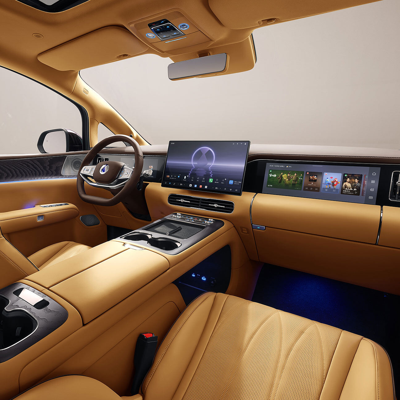 ห้องโดยสารของ All-New Denza D9 เจเนอเรชันที่ 2 ได้รับการพลิกโฉมครั้งใหญ่เพื่อมอบประสบการณ์ระดับ First-Class อย่างแท้จริง โดยผสานเทคโนโลยีล้ำสมัยเข้ากับความหรูหราแบบฉบับรถผู้บริหารระดับสูง เน้นการใช้วัสดุพรีเมียมและนวัตกรรมหน้าจอที่ครอบคลุมทุกตำแหน่งที่นั่ง