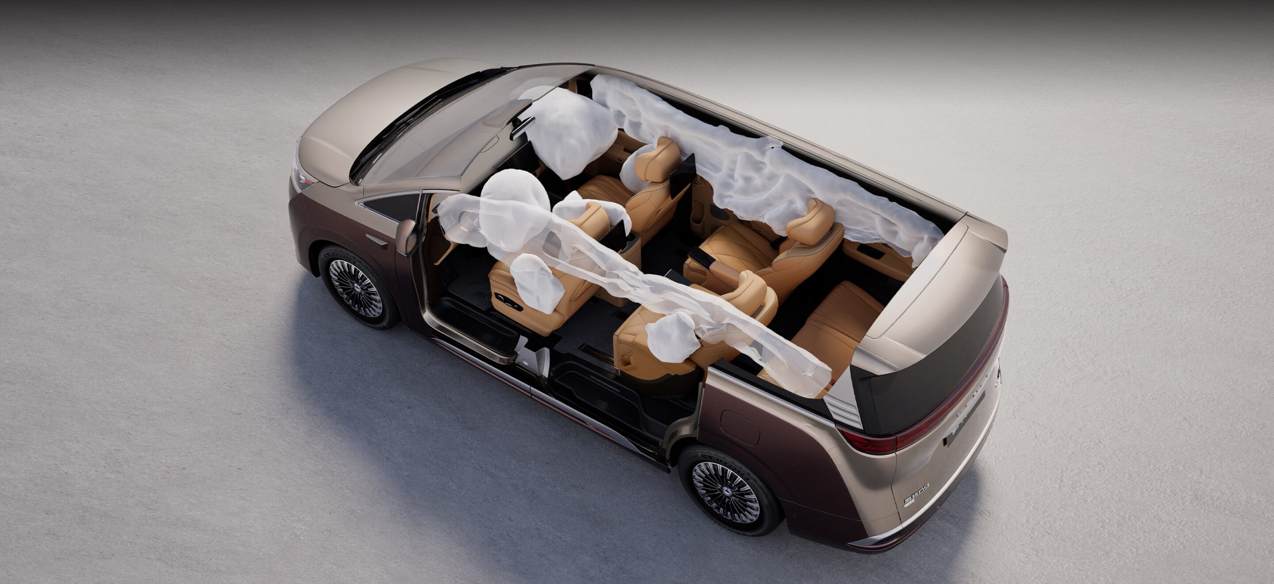 - ถุงลมนิรภัยรอบคัน: จัดเต็มด้วยระบบถุงลมนิรภัยที่ครอบคลุมพื้นที่ทั้ง 3 แถวที่นั่ง ประกอบด้วย ถุงลมนิรภัยคู่หน้า, ถุงลมนิรภัยด้านข้าง, และม่านถุงลมนิรภัย (Side Curtain Airbags) ที่ลากยาวปกป้องตั้งแต่ผู้โดยสารตอนหน้าไปจนถึงผู้โดยสารแถวที่สาม เพื่อลดความรุนแรงจากการชนด้านข้างให้เหลือน้อยที่สุด
