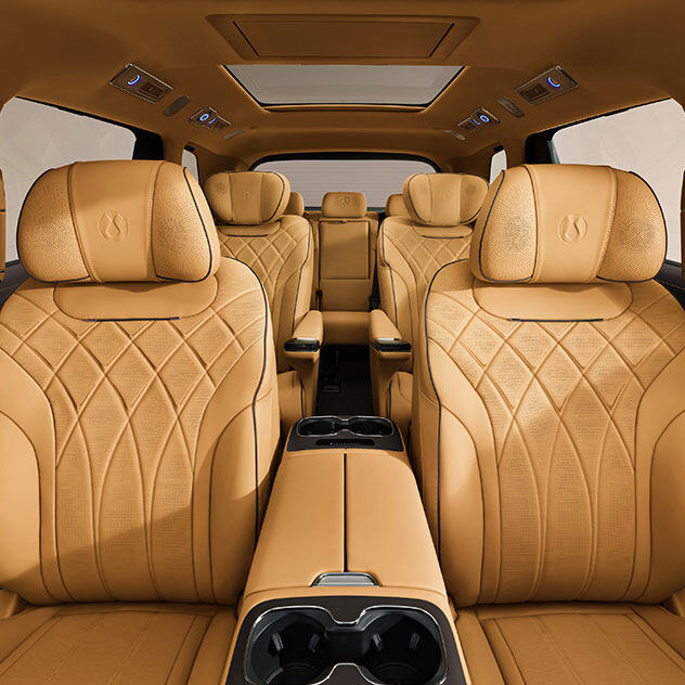 - เบาะนั่งแถวที่ 2 (VIP Captain Seats): สามารถอัปเกรดเป็นเบาะพรีเมียม “Zero-pressure Cloud Velvet” ที่ให้สัมผัสนุ่มสบายเป็นพิเศษ มาพร้อมระบบนวดที่ครอบคลุมถึง 16 จุด ระบบระบายอากาศ และระบบทำความร้อน