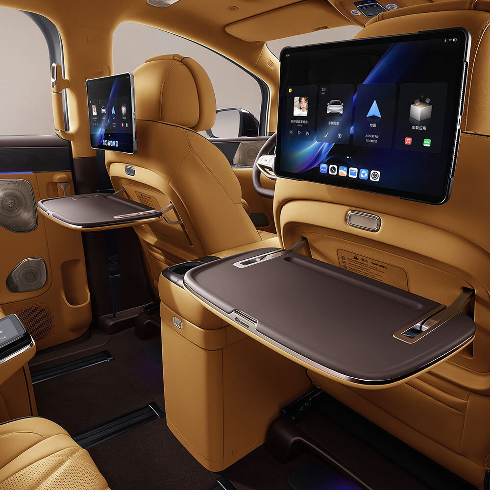 - หน้าจอสำหรับผู้โดยสารตอนหน้าขนาด 15.6 นิ้ว: ไฮไลท์พิเศษที่ออกแบบให้เป็นหน้าจอแบบพับเปิด-ปิดได้ และเมื่อพับลงมา แผงด้านหลังจอจะทำหน้าที่เป็นโต๊ะอเนกประสงค์ขนาดเล็กที่สามารถรองรับน้ำหนักได้ถึง 5 กิโลกรัม