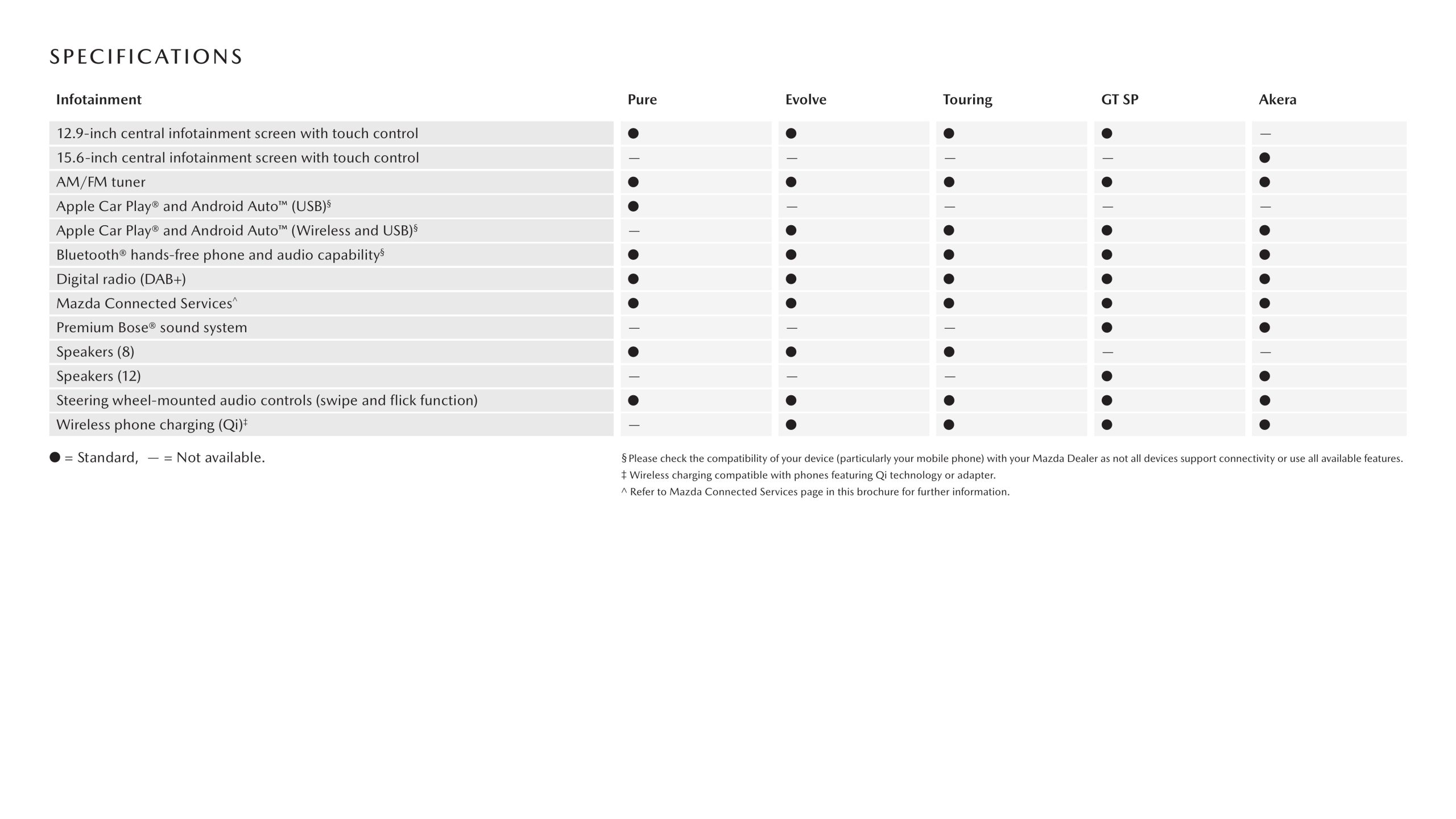 - การเชื่อมต่อสมาร์ทโฟน: รองรับ Apple CarPlay และ Android Auto โดยในรุ่น Evolve ขึ้นไปจะเป็นแบบไร้สาย (Wireless)