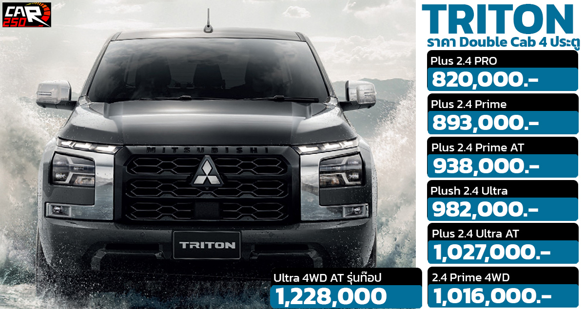 เพิ่มรุ่นทีอปในไทย Mitsubishi TRIOTN Ultra 4WD AT ราคา 1,228,000 บาท 2.4 VG-Turbo 184 แรงม้า