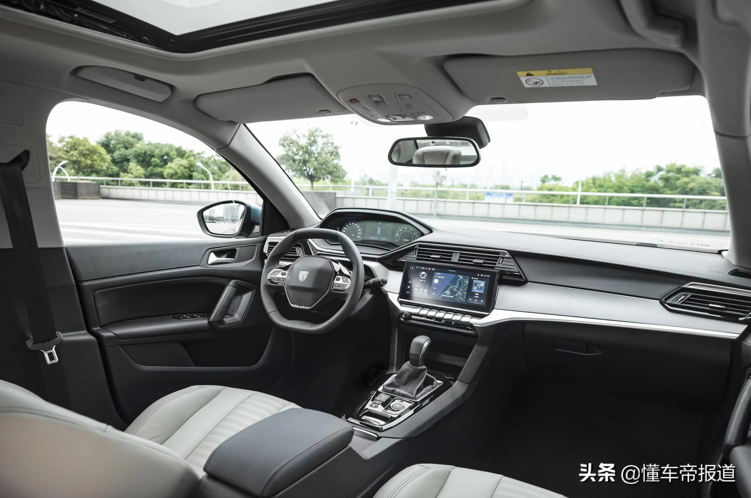 ภายในห้องโดยสาร ใช้การออกแบบ i-Cockpit เน้นความหรูหราในสไตล์รถครอบครัว หน้าปัดดิจิตอล 3D ขนาด 12 นิ้วรวมเข้ากับหน้าจอสัมผัส 10 นิ้ว พร้อมระบบ Focal Premium Hi-Fi ลำโพง 14 ตัว ระบบเชื่อมต่อเครือข่ายอัจฉริยะ Dongfeng Peugeot Blue-i 3.0 ติดตั้ง ACC adaptive cruise, CarPlay, ระบบฟอกอากาศ AQS ระบบกล้อง 360 องศา