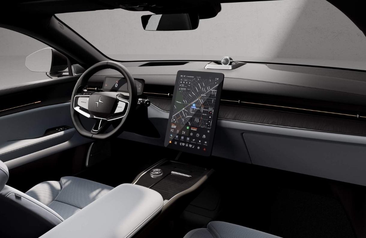 ภายในห้องโดยสารออกแบบในสไตล์สแกนดิเนเวีย เน้นวัสดุที่เป็นมิตรต่อสิ่งแวดล้อมทางชีวภาพ MicroTech พร้อมจอแสดงผลส่วนกลางขนาด 14.5 นิ้ว (ระบบ Infotainment จะใช้แพลตฟอร์ม Snapdragon Cockpit ของ Qualcomm) ความหนาแน่นของพิกเซล 208 ppi และการเคลือบป้องกันแสงสะท้อนเพื่อให้ อ่านค่าได้ ดีเยี่ยมแม้ในแสงแดดโดยตรง รองรับ Apple CarPlay แบบไร้สาย Google Maps ในตัว ผู้ช่วยเสียงของ Google การอัปเดตแบบ over-the-air แผงหน้าปัดขนาด 9 นิ้ว หน้าจอ Head-up display แสดงข้อมขับขี่บนกระจก