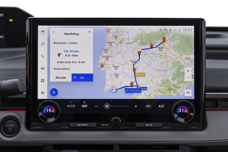 • ระบบนำทางสำหรับรถไฟฟ้า (BEV Navigation): วางแผนเส้นทางโดยคำนวณจากปริมาณแบตเตอรี่ที่เหลืออยู่ พร้อมเสนอจุดชาร์จที่เหมาะสมที่สุดระหว่างทางแบบ Real-time