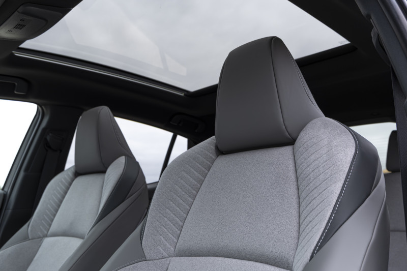 ภายในห้องโดยสารของ Toyota C-HR+ ถูกยกระดับให้มีความพรีเมียมและทันสมัย โดยใช้ประโยชน์จากแพลตฟอร์ม eTNGA เพื่อขยายพื้นที่ใช้สอยให้กว้างขวางเทียบเท่ากับรถ SUV ขนาดใหญ่ (D-SUV) พร้อมการตกแต่งที่เน้นความยั่งยืน