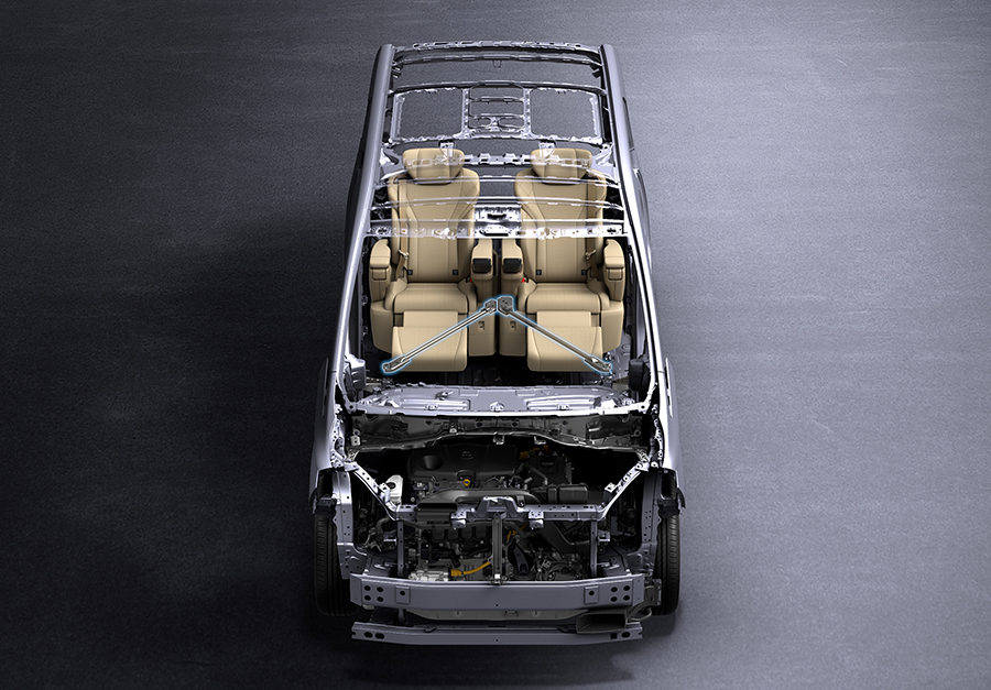 All-NEW TOYOTA Vellfire เจนที่ 4 สร้างบนแพลตฟอร์ม TNGA (Toyota New Global Architecture) รุ่นล่าสุด ได้รับการปรับให้เหมาะกับการใช้งานของรถมินิแวน โดยการใช้ตัวโยกแบบตรงและตัวยึดรูปตัววีที่ส่วนล่างของรถด้านหลัง ปรับปรุงความแข็งแกร่งขึ้น 50% เมื่อเทียบกับรุ่นที่สา มาพร้อมแนวทางการออกแบบ “Forceful x IMPACT LUXURY” ถูกนำมาใช้เพื่อสื่อถึงพลังที่ทรงพลัง พุ่งไปข้างหน้าอย่างมีไดนามิก ในขณะที่ยังคงไว้ซึ่งการตกแต่งภายในที่กว้างขวาง