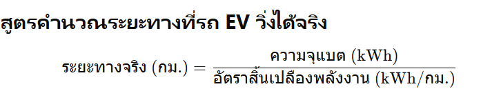 สูตรคำนวณระยะทางที่รถ EV วิ่งได้จริง