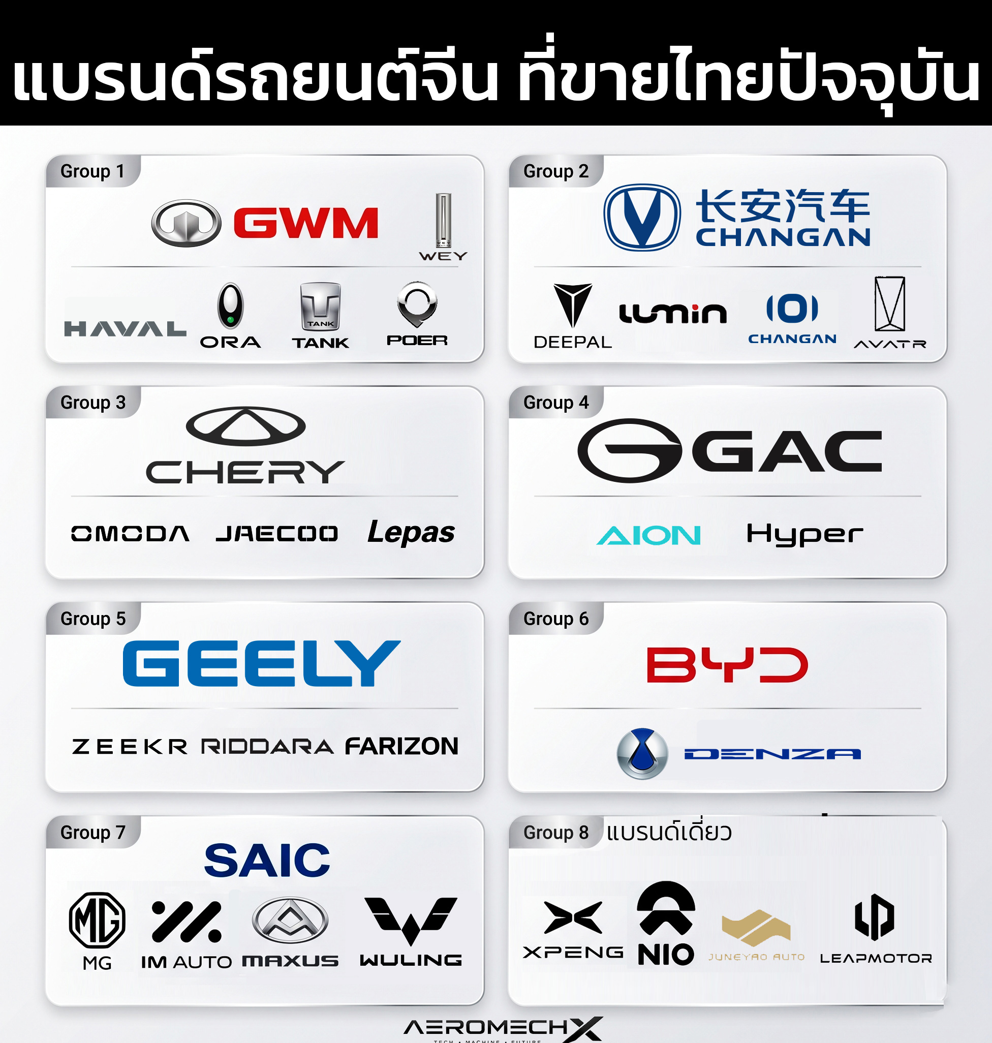 - Geely (6 รุ่นย่อย): EX2 (PRO, MAX, Shooting Star), EX5 (PRO, MAX, MAX+)