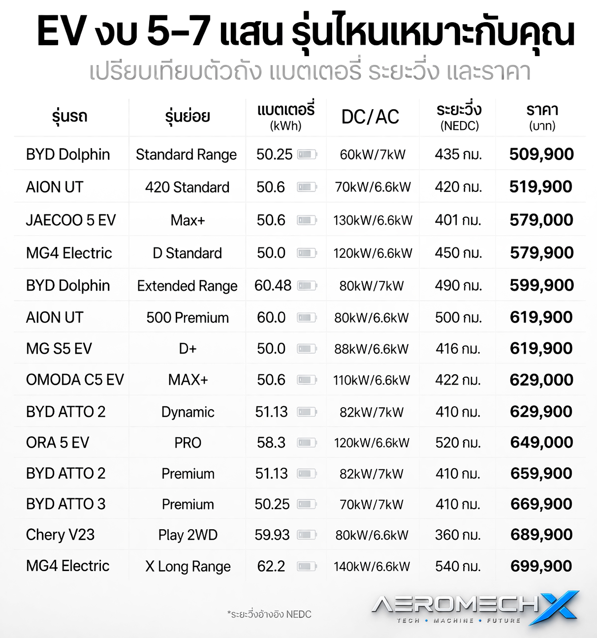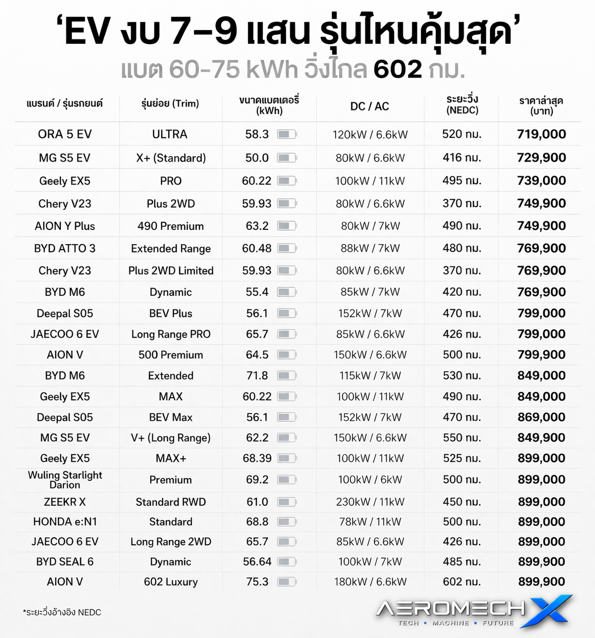 EV งบ 7–9 แสน รุ่นไหนคุ้มสุด