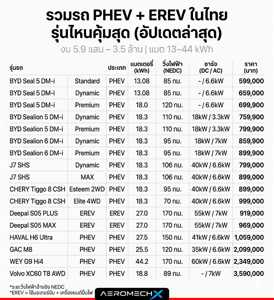 รวมราคารถยนต์ในไทย PHEV+EREV