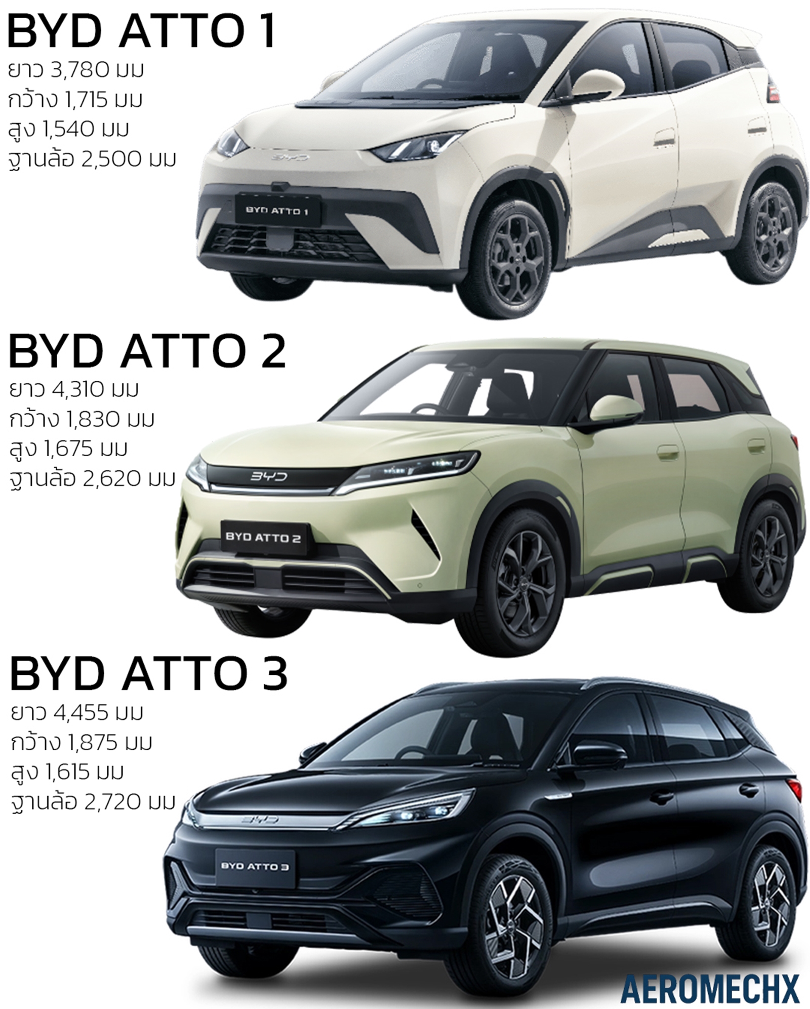 ซึ่งหากมองตลาดไทย Atto 2 จะอยู่ กึ่งกลางระหว่าง Dolphin กับ Atto 3 พอดี
