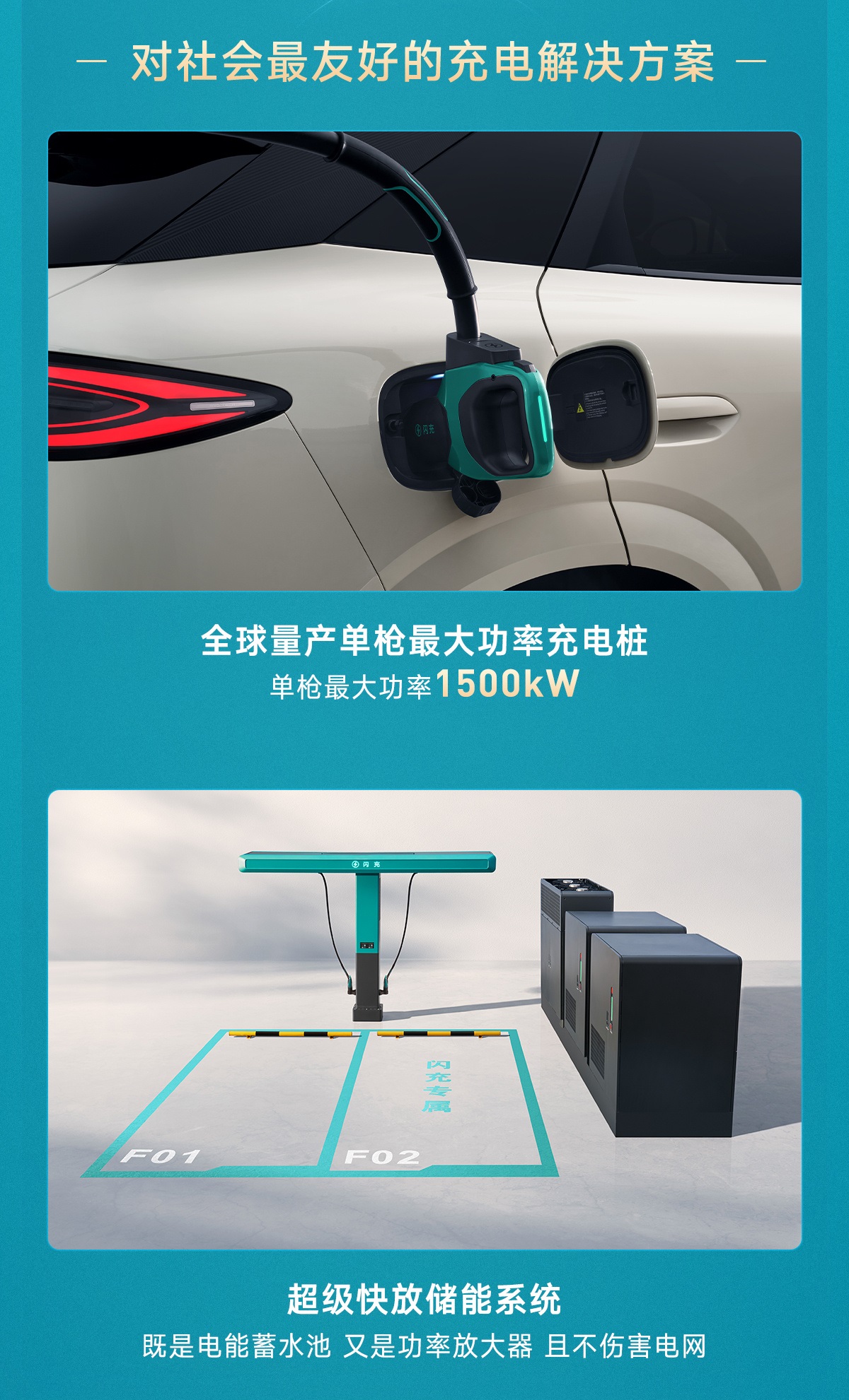 กำลังไฟมหาศาล: หัวชาร์จเดี่ยวจ่ายไฟสูงสุด 1,500kW (ตู้เมน 1 ตู้จ่ายไฟรวมได้ 2,100kW) รองรับสถาปัตยกรรมแรงดันไฟฟ้าตั้งแต่ 400V ถึง 1,000V สามารถชาร์จรถได้ทุกแบรนด์ในตลาด