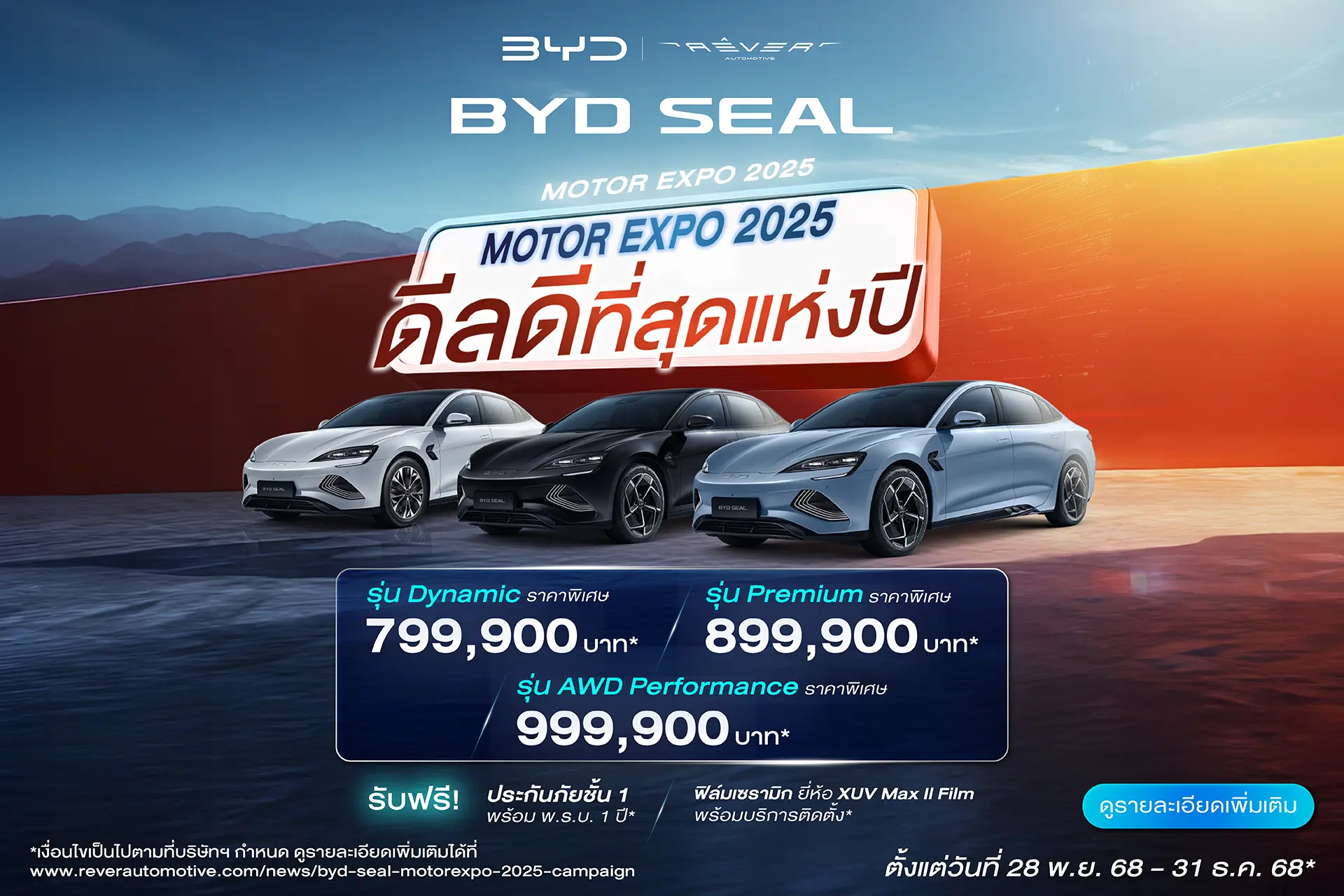 - BYD SEALION 6 DM-i มูลค่าเบี้ยประกันสูงสุด 33,700 บาท