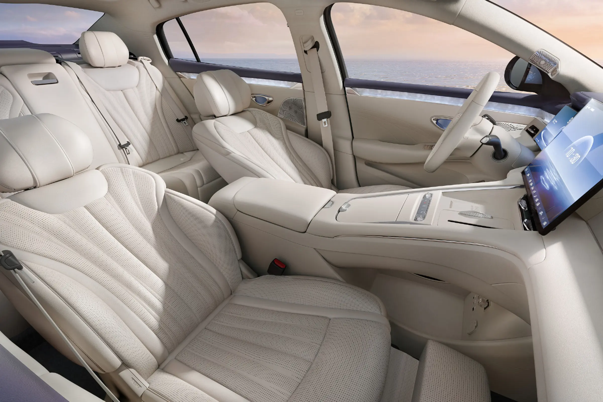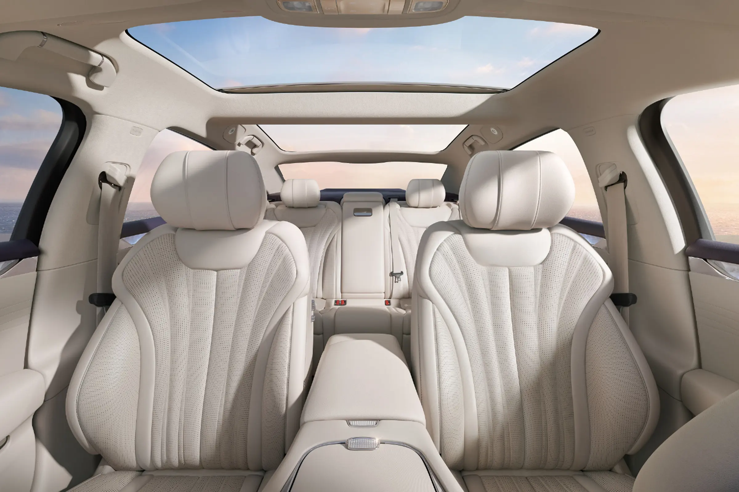 - เบาะหลังเอนได้กว้างเป็นพิเศษ: พนักพิงเบาะหลังมีองศาการเอนที่ค่อนข้างมาก ให้ความรู้สึกสบายขั้นสุด (แม้ขณะนี้จะยังไม่มีการยืนยันว่าสามารถปรับเอนด้วยไฟฟ้าได้หรือไม่)