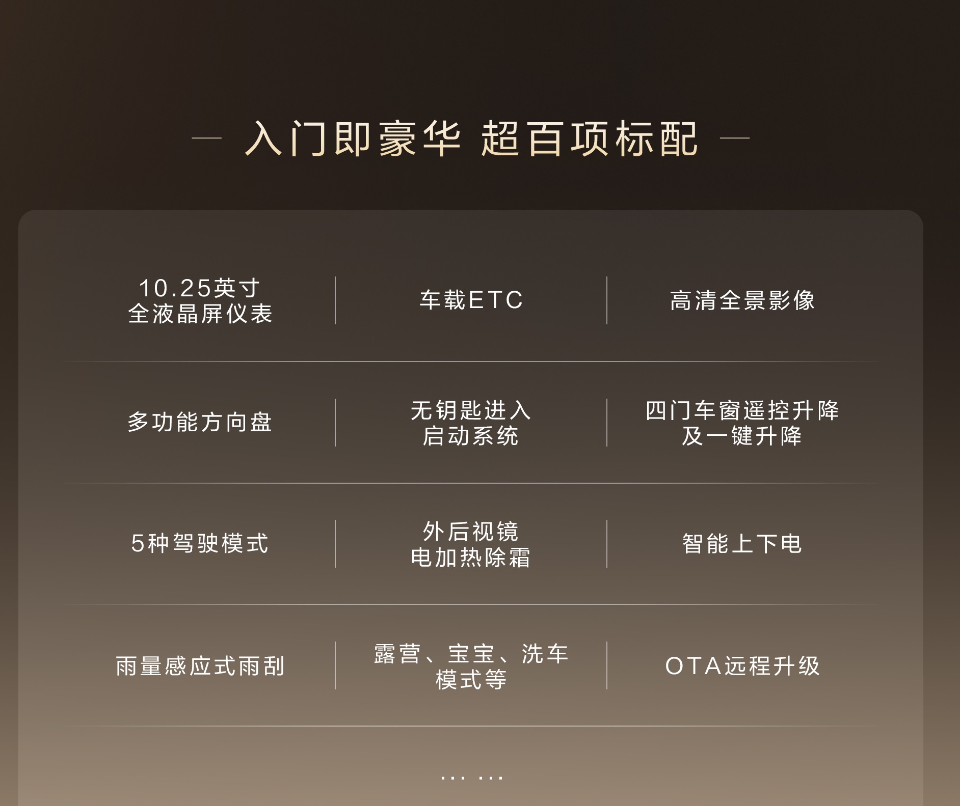 โหมดพิเศษ: มีโหมดแคมป์ปิ้ง (Camping), โหมดเด็ก (Baby), และโหมดล้างรถ (Car Wash) ซึ่งจะปรับการทำงานของแอร์และหน้าจอให้เหมาะสมอัตโนมัติ