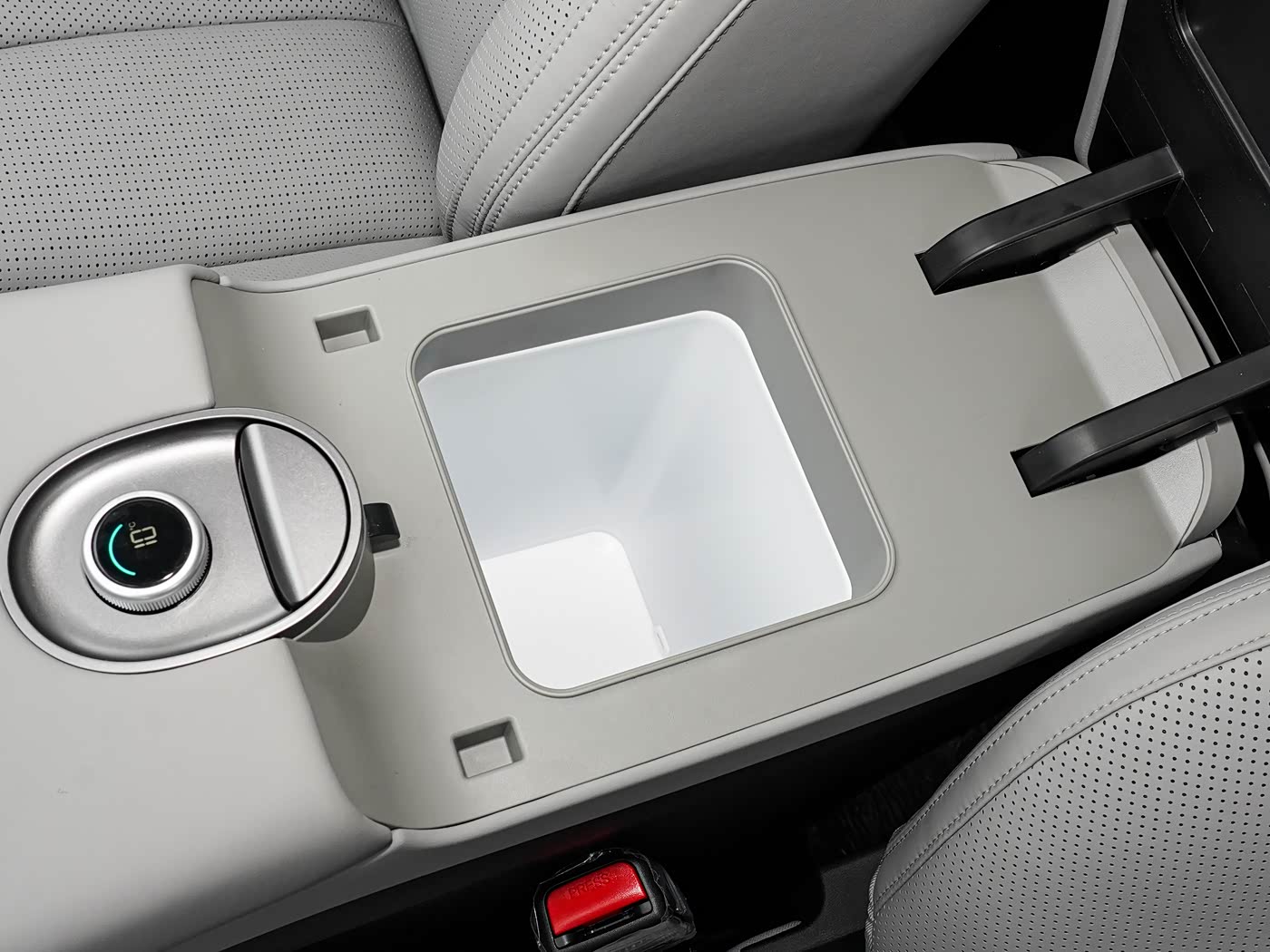ตู้เย็นอัจฉริยะ: อยู่บริเวณที่วางแขนคอนโซลกลาง สามารถปรับได้ทั้ง ทำความเย็นและอุ่นร้อน (มีในรุ่น Flagship)