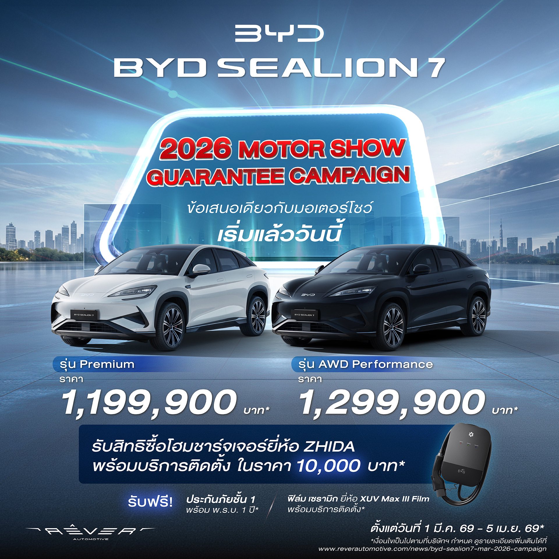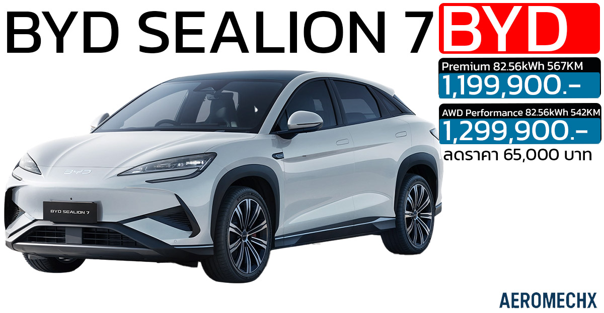 - BYD SEALION 7 รุ่น AWD Performance: ราคาพิเศษ 1,299,900 บาท (เดิมราคา 1,364,900 บาท)