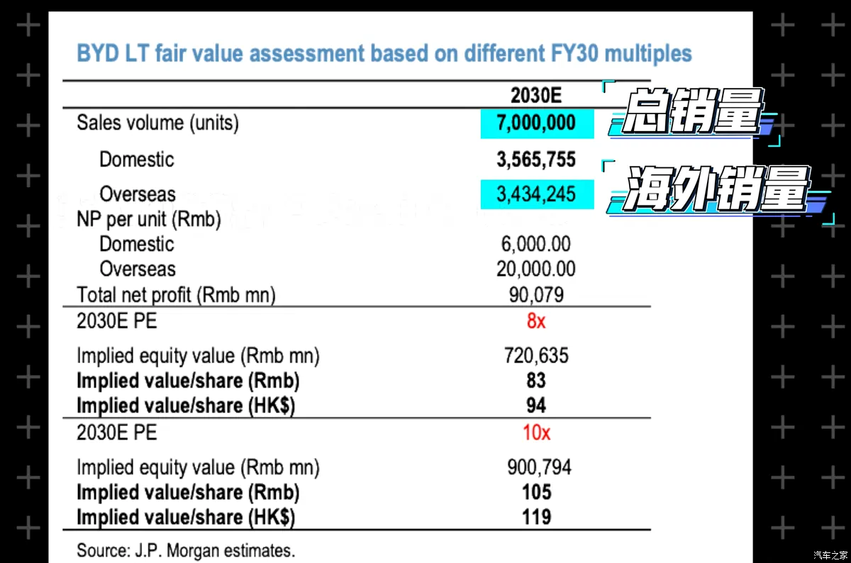 แม้ปัจจุบันจะตามหลัง แต่สถาบันการเงินยักษ์ใหญ่กลับมองต่าง Goldman Sachs คาดว่าในอีก 10 ปีข้างหน้า ยอดขายต่างประเทศของ BYD จะแตะ 3.5 ล้านคัน ขณะที่ JP Morgan มองบวกกว่านั้น โดยคาดว่ายอดขาย 3.5 ล้านคันจะเกิดขึ้นในอีก 4 ปีข้างหน้า และในปี 2030 BYD จะขายรถได้ถึง 7 ล้านคันต่อปี! นี่คือเหตุผลครับ:
