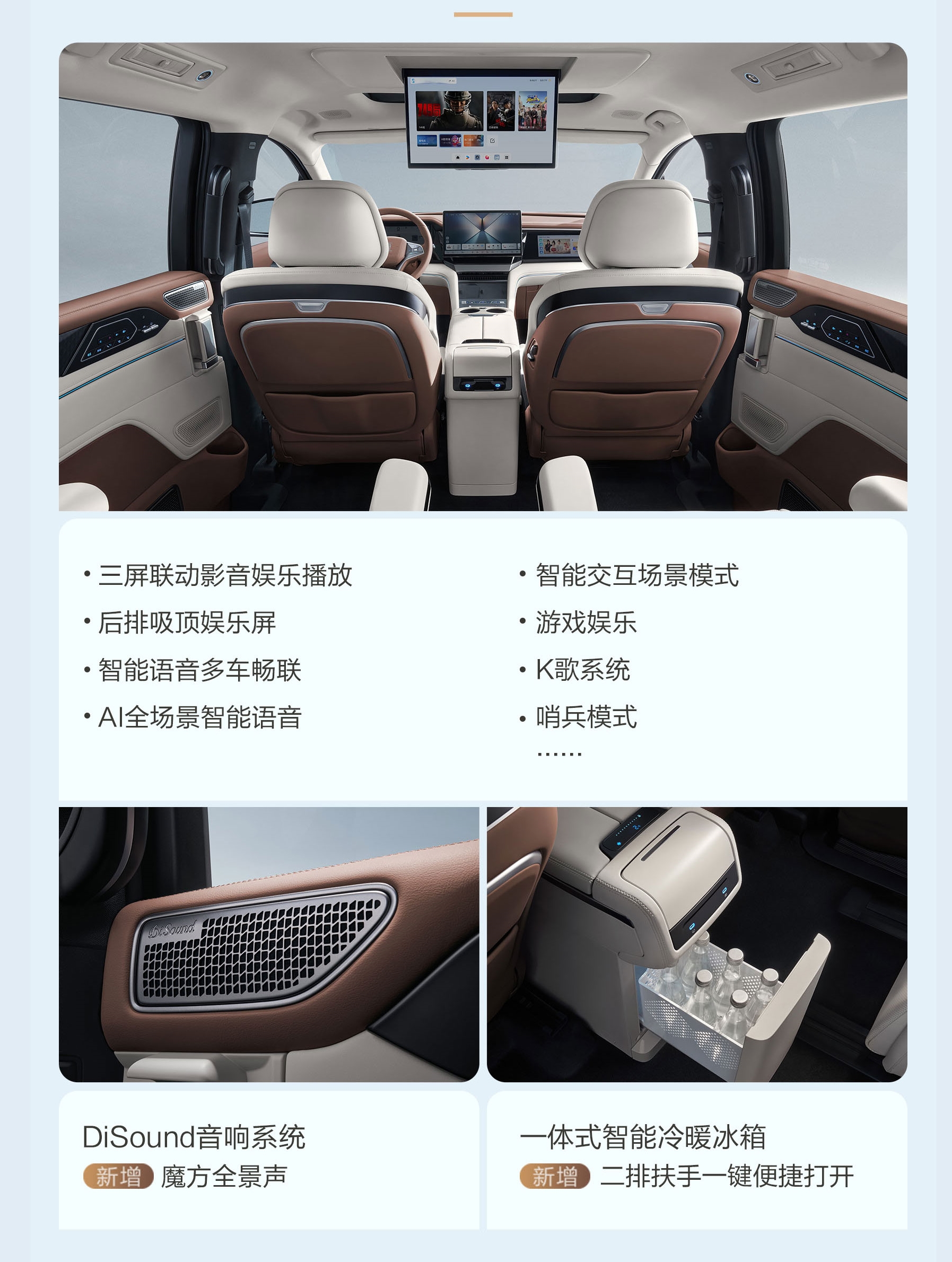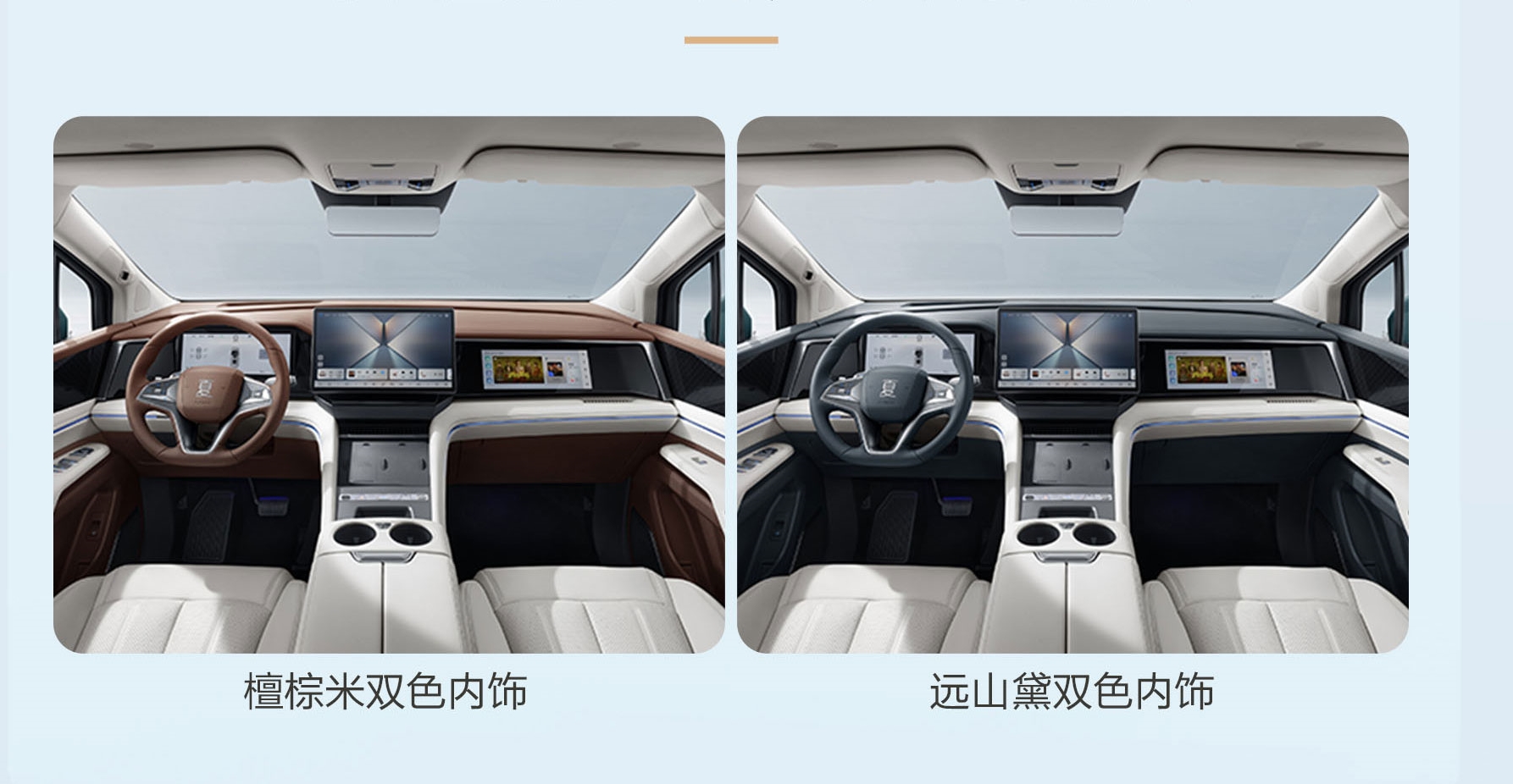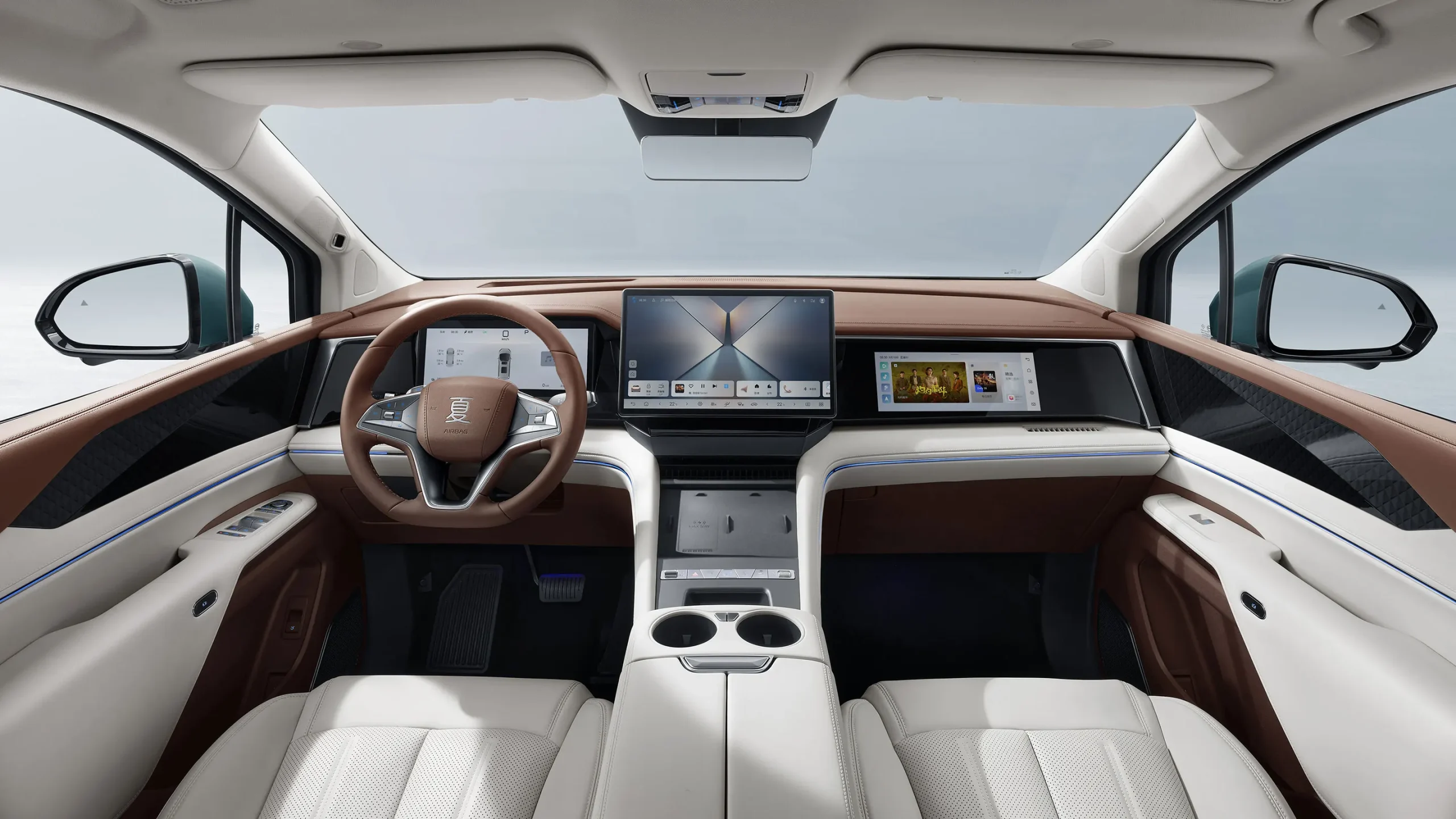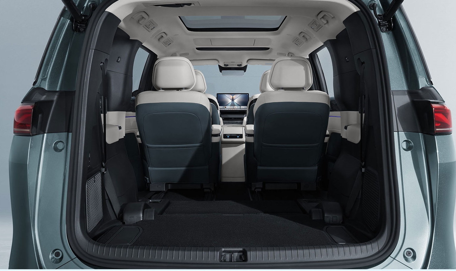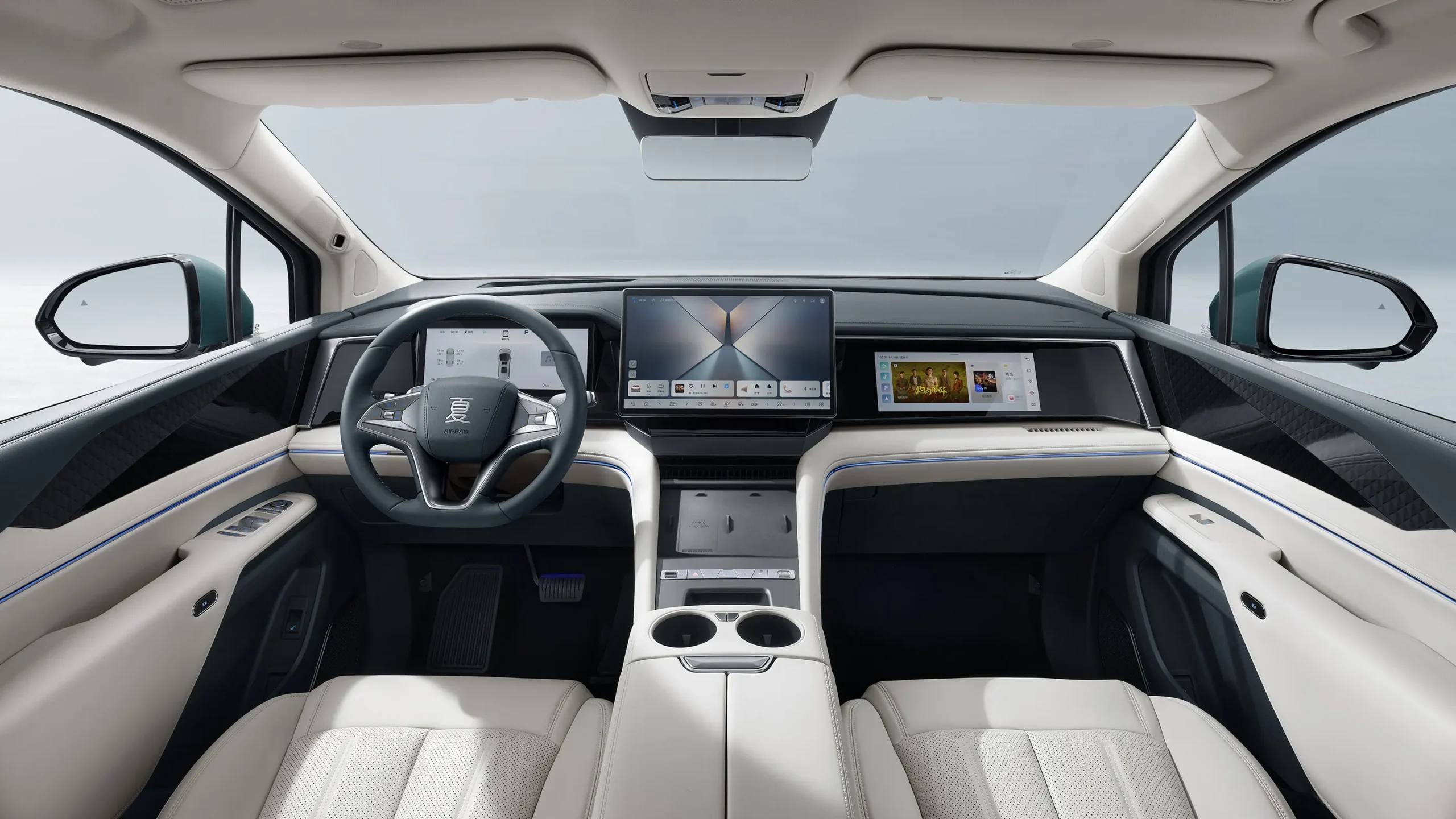 ห้องโดยสารออกแบบในโทนหรูสงบ เน้นความกว้าง โปร่ง และการจัดวางแบบรถเรือธงสำหรับครอบครัวหรือผู้บริหาร คอนโซลกลางดีไซน์เรียบ ใช้วัสดุสัมผัสนุ่มรอบคัน เสริมด้วยเส้นไฟ Ambient Light ปรับสีได้ตามโหมดการขับ และแผงหน้าปัดติดตั้งจอคู่ขนาดใหญ่ เพื่อเพิ่มความล้ำแบบรถไฮเทคยุคใหม่