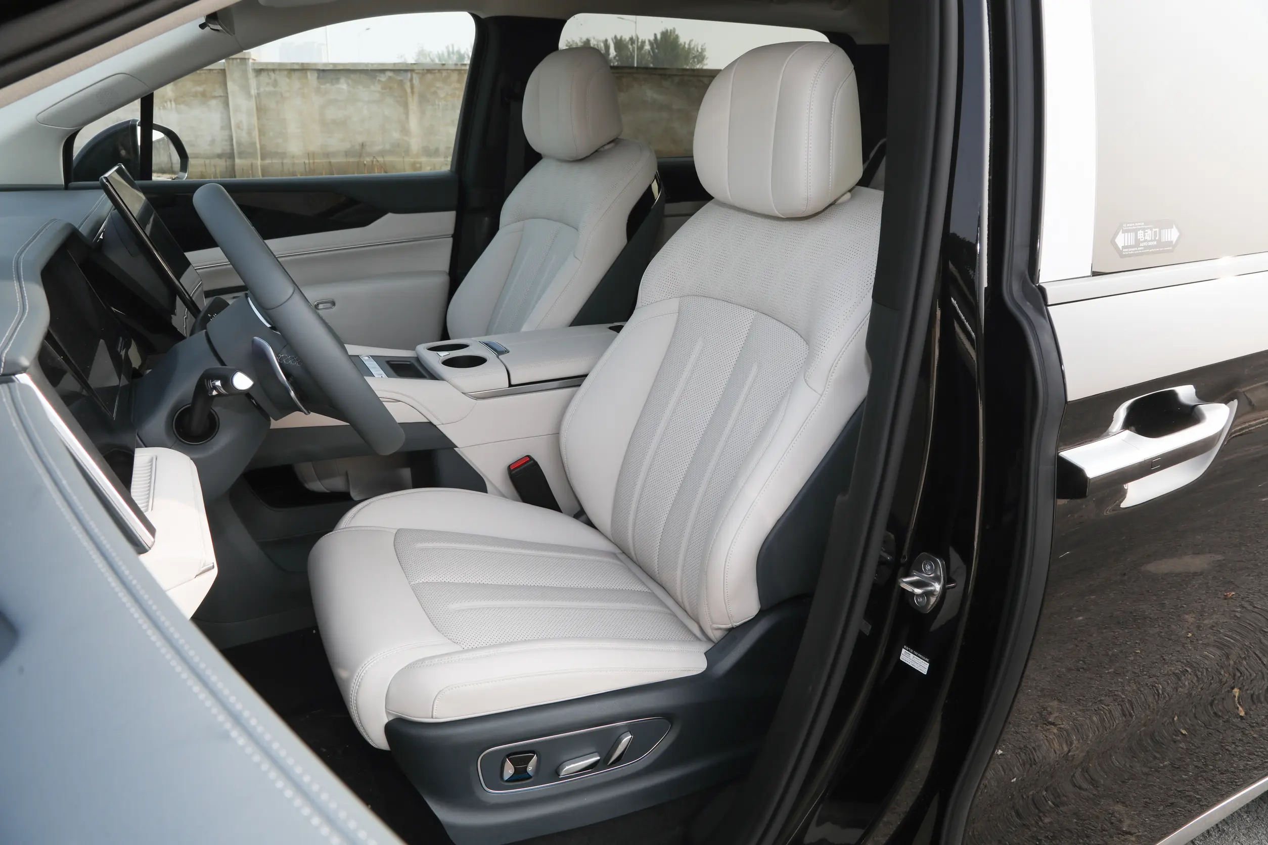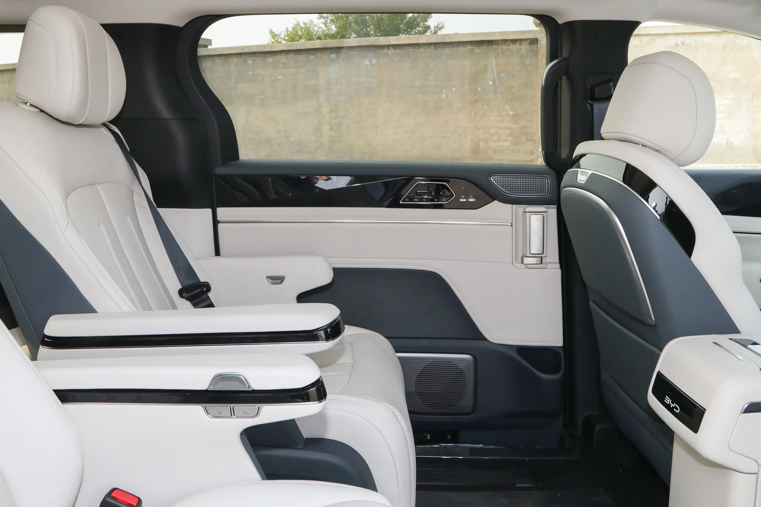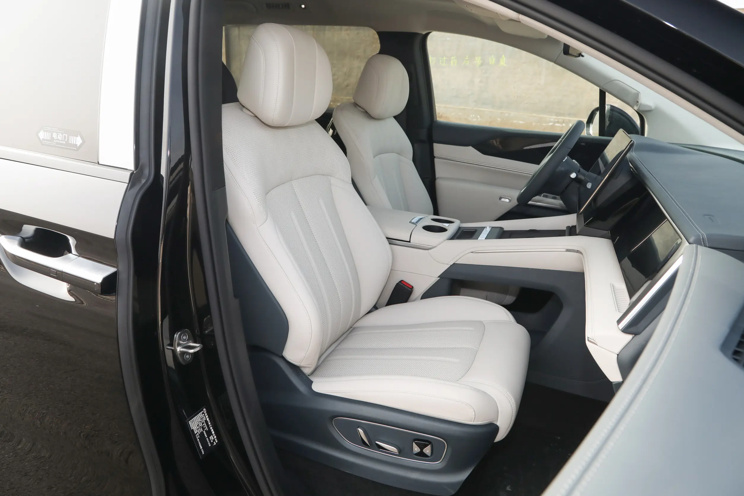 ห้องโดยสารออกแบบในโทนหรูสงบ เน้นความกว้าง โปร่ง และการจัดวางแบบรถเรือธงสำหรับครอบครัวหรือผู้บริหาร คอนโซลกลางดีไซน์เรียบ ใช้วัสดุสัมผัสนุ่มรอบคัน เสริมด้วยเส้นไฟ Ambient Light ปรับสีได้ตามโหมดการขับ และแผงหน้าปัดติดตั้งจอคู่ขนาดใหญ่ เพื่อเพิ่มความล้ำแบบรถไฮเทคยุคใหม่