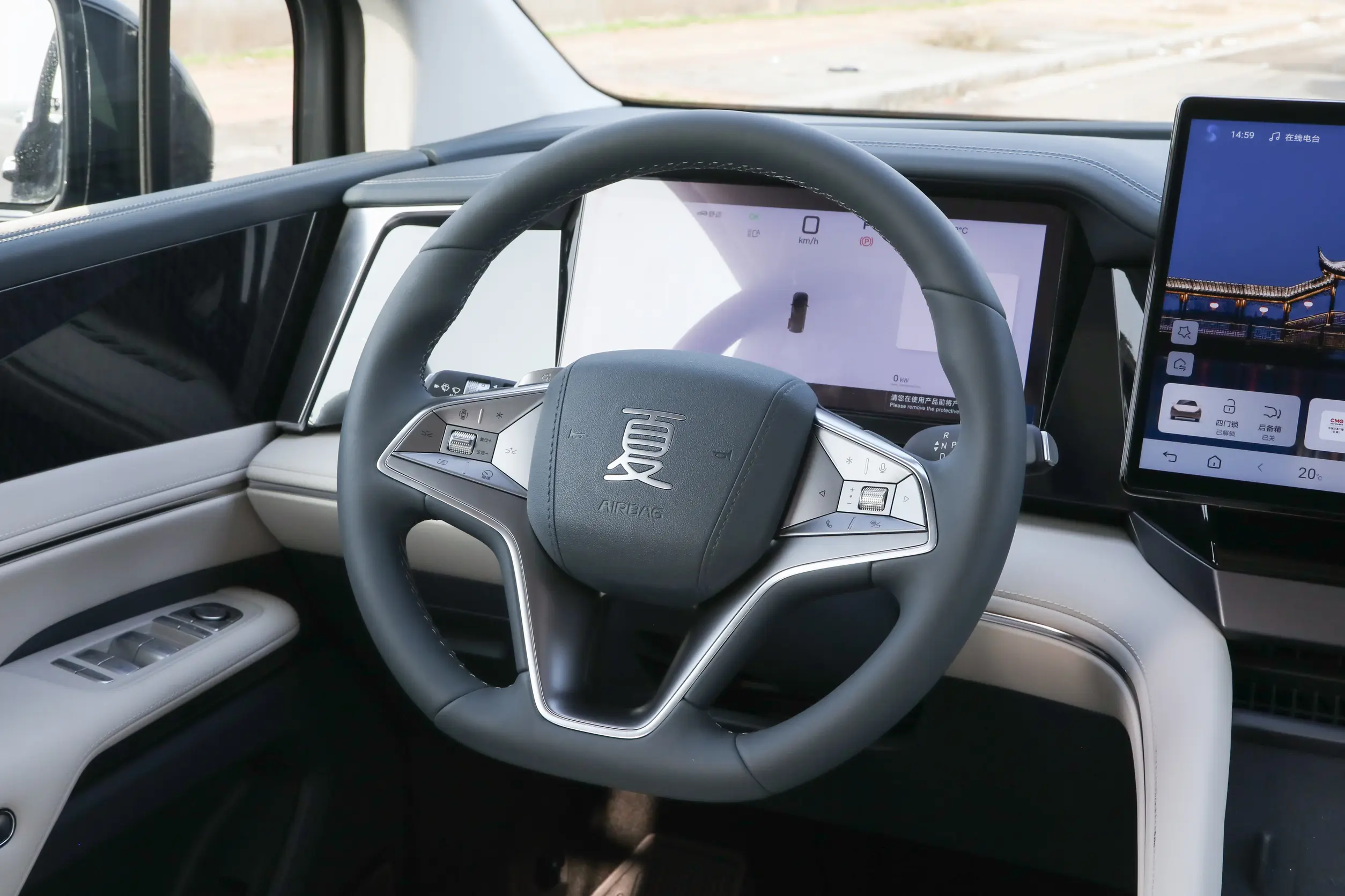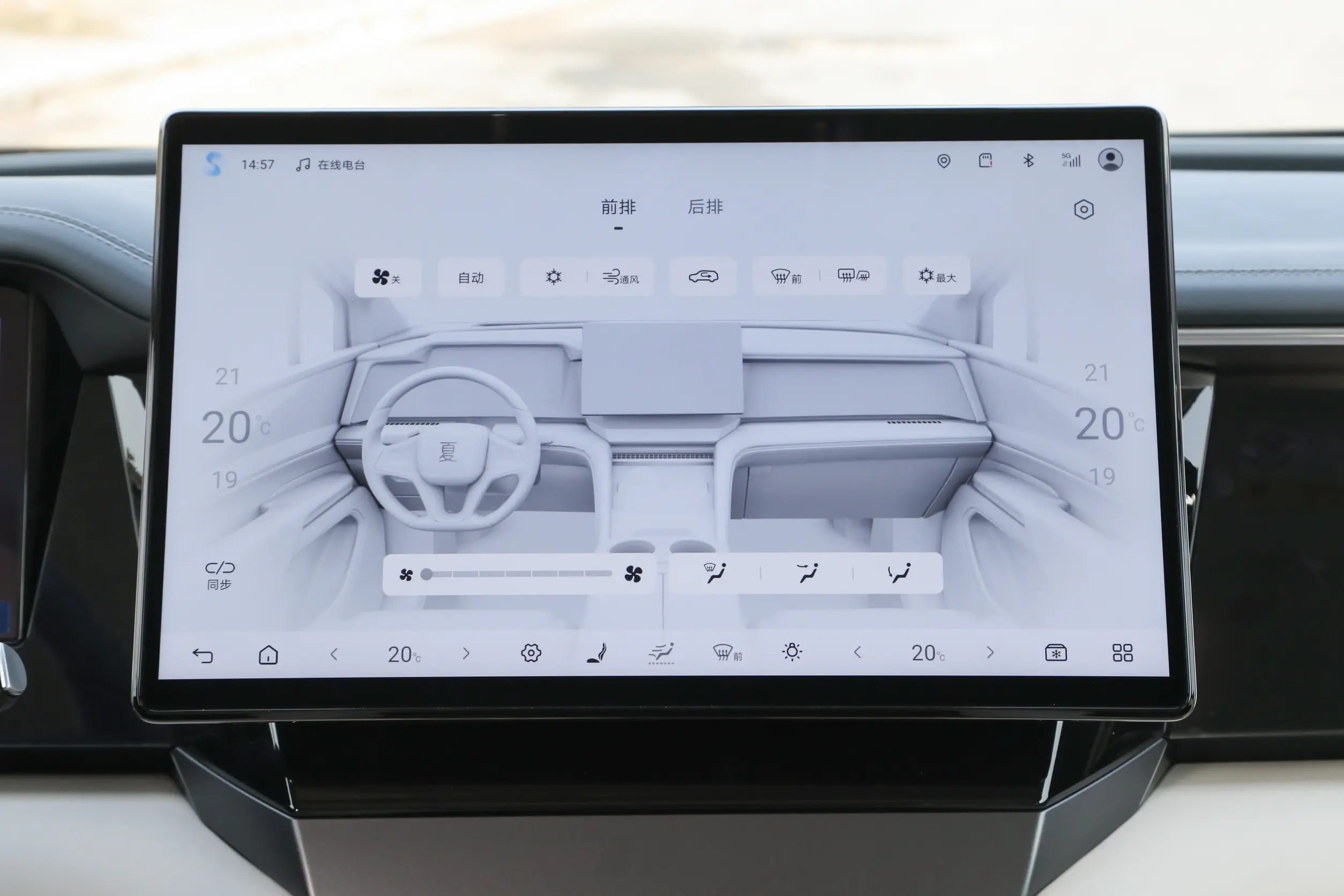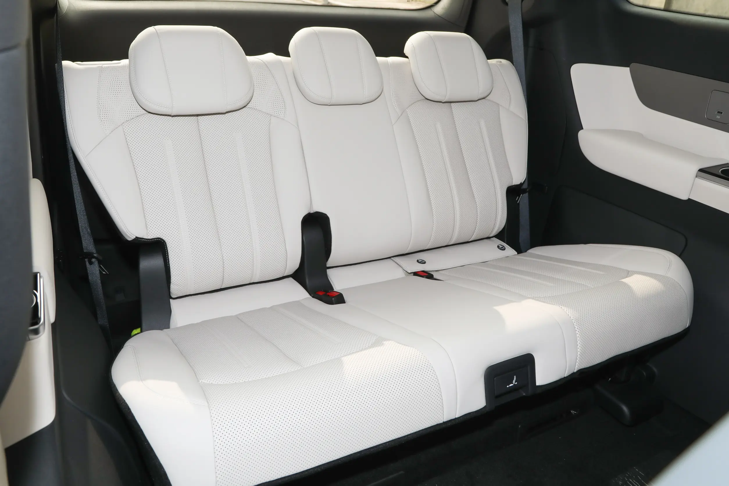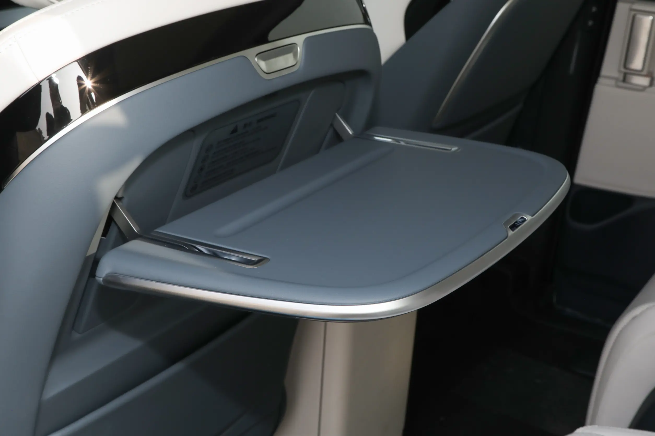 ห้องโดยสารออกแบบในโทนหรูสงบ เน้นความกว้าง โปร่ง และการจัดวางแบบรถเรือธงสำหรับครอบครัวหรือผู้บริหาร คอนโซลกลางดีไซน์เรียบ ใช้วัสดุสัมผัสนุ่มรอบคัน เสริมด้วยเส้นไฟ Ambient Light ปรับสีได้ตามโหมดการขับ และแผงหน้าปัดติดตั้งจอคู่ขนาดใหญ่ เพื่อเพิ่มความล้ำแบบรถไฮเทคยุคใหม่