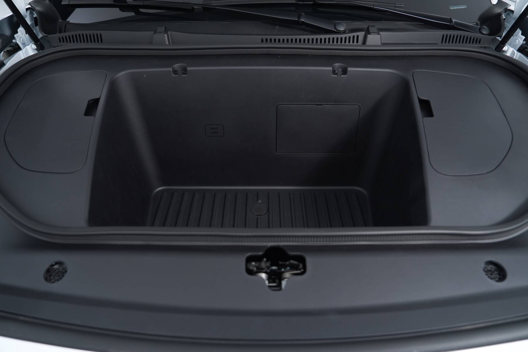 - ที่เก็บของด้านหน้า (Frunk): ขนาดความจุ 70 ลิตร เปิดได้ถึง 8 วิธี (รวมถึงคำสั่งเสียงจากภายนอก) พร้อมรูระบายน้ำและตะขอในตัว