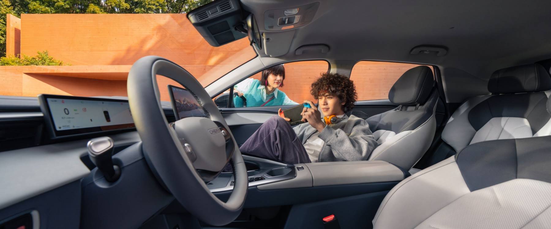 ภายในห้องโดยสารได้รับการรีโนเวทใหม่ให้ดูเรียบง่ายแต่ไฮเทค ตามแบบฉบับรถยนต์ไฟฟ้า (New Energy Style):