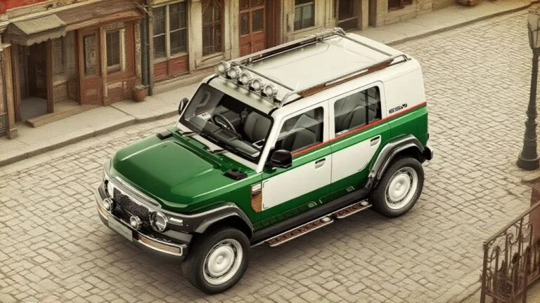 ตัวรถใช้สีแบบทูโทน (ครีม-เขียวเข้ม) + กันชนหน้าไม้ลายโครเมียม + กระจังหน้าตาข่าย