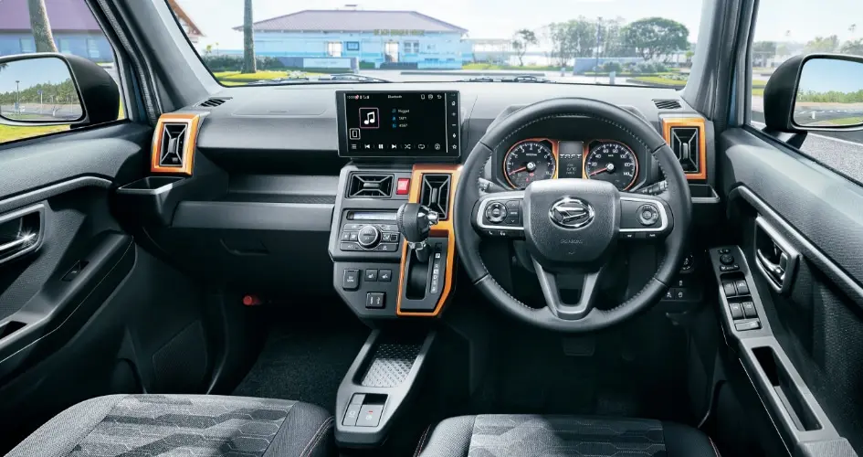 ห้องโดยสารของ Daihatsu Taft 2025 ถูกออกแบบภายใต้แนวคิด “แข็งแรง ใช้งานง่าย และโปร่งโล่ง” เน้นประโยชน์ใช้สอยเป็นหลักตามสไตล์รถ Kei Car แต่เพิ่มรายละเอียดและอารมณ์แบบ SUV ให้แตกต่างจากรถเล็กทั่วไป เหมาะทั้งการใช้งานในเมืองและการเดินทางระยะสั้น–กลาง