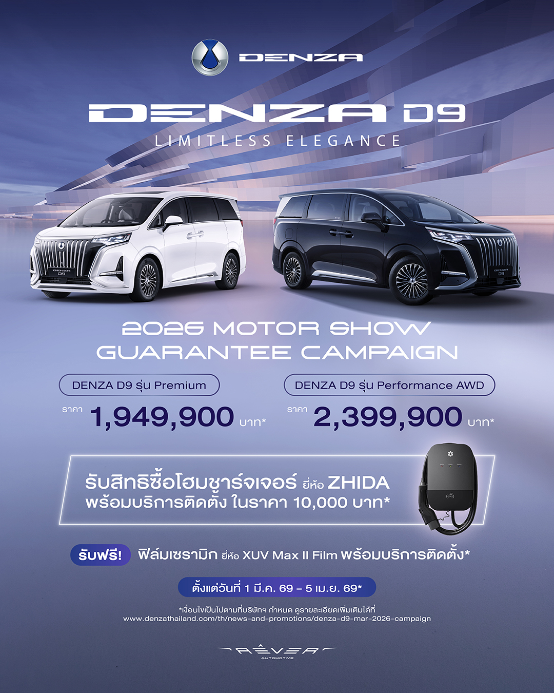- DENZA D9 รุ่น Premium: ราคาพิเศษ 1,949,900 บาท (เดิมราคา 2,154,900 บาท)