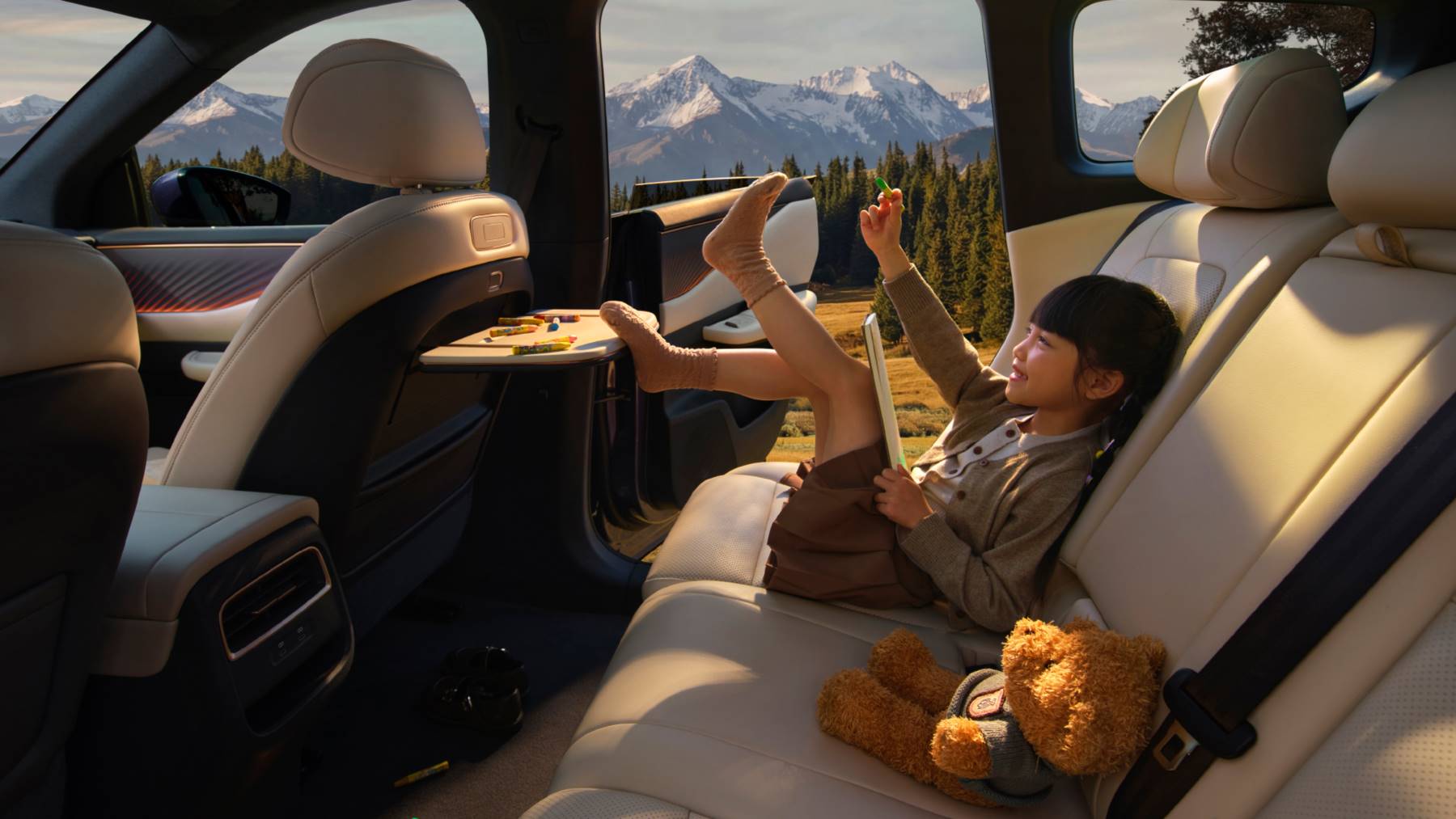 - พื้นที่เก็บของใต้คอนโซลกลางแบบเปิดได้สองด้าน และโต๊ะพับหลังเบาะผู้โดยสารหน้า