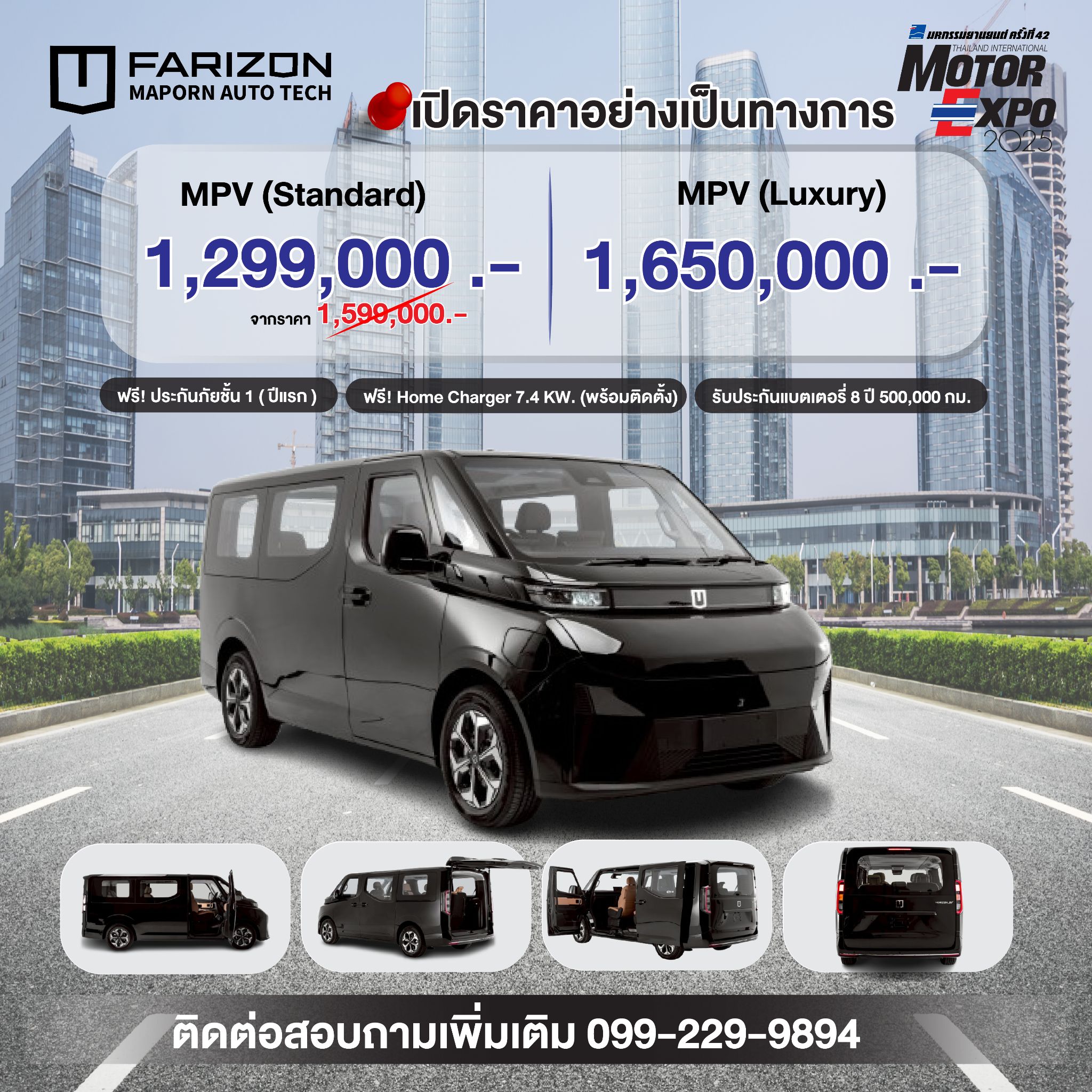 FARIZON MPV ไฟฟ้า 100% วิ่งไกล 450 กม./ชาร์จ ประตูสไลด์ไฟฟ้า ราคาเริ่ม 1.299 ล้าน ปัจจุบันมียอดจองในงาน MOTOR EXPO 2025 : รวม 7 วันกว่า 111 คัน