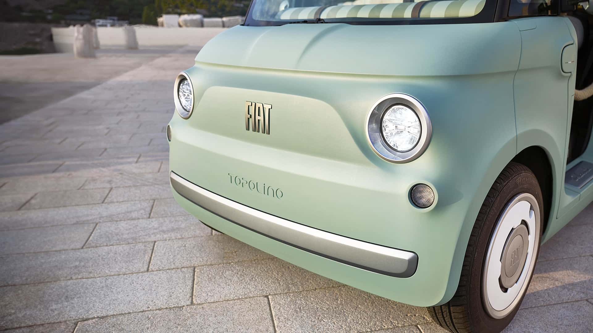 Fiat Topolino EV พัฒนาบนพื้นฐานเดียวกับ Citroën Ami แต่มีสไตล์การตกแต่งด้านหน้าและด้านหลังที่แตกต่างกันตามเอกลักษณ์ของแบรนด์ วางจำหน่ายในรูปแบบตัวถังสองแบบ ได้แก่ Topolino แบบปิดสำหรับในเมือง และ Topolino Dolcevita แบบเปิดที่มีธีมสำหรับชายหาดสำหรับ ชายทะเลพร้อมหลังคาผ้าใบขนาดใหญ่ และเชือก