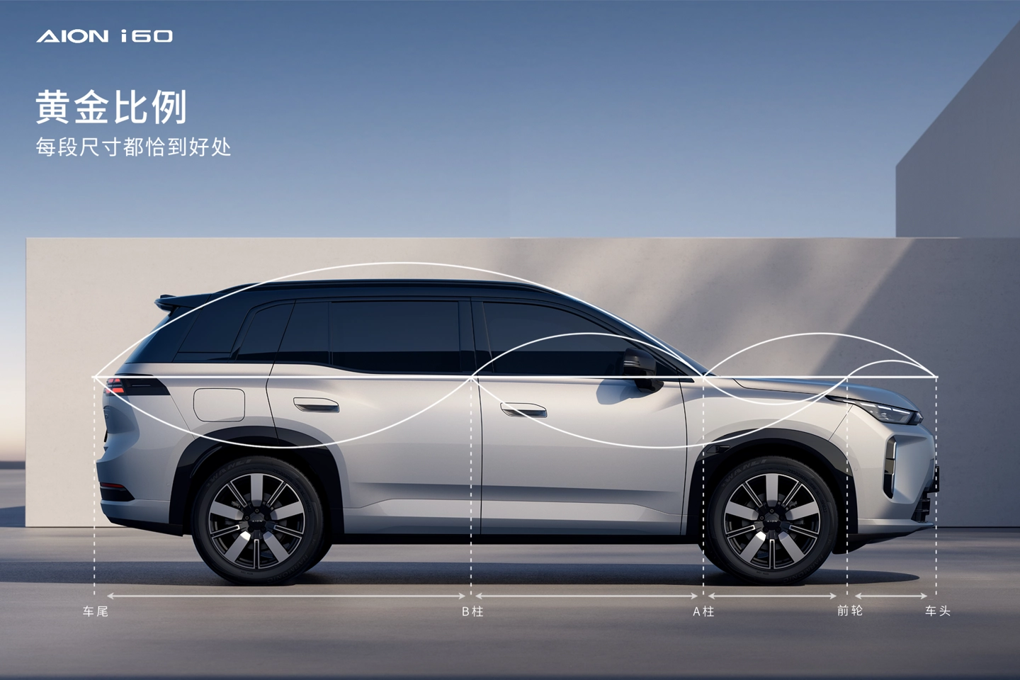 AION i60 มาในภาพลักษณ์ของ SUV ครอบครัวสายเรียบหรู ด้านหน้าเด่นด้วย เส้นไฟ DRL แบบพาดยาวเต็มคัน (贯穿式灯带) ซึ่งเป็นเอกลักษณ์ของรถไฟฟ้ายุคใหม่ พร้อมแนวกระจังหน้าปิดทึบสไตล์รถพลังงานใหม่