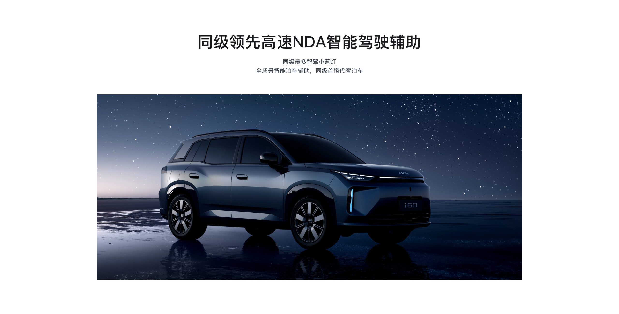 AION i60 มาพร้อมดีไซน์หน้าใหม่หมดจด ไฟหน้า LED แบบเรียวคมพร้อมเส้นไฟ DRL พาดยาวระดับฝากระโปรง และโลโก้ AION แบบตัวอักษรเด่นชัดด้านบน ด้านล่างเป็นช่องดักลมแนวตั้งที่ซ่อน “ไฟช่วยขับสีน้ำเงิน” สำหรับระบบขับขี่อัตโนมัติ รวมถึงมีโปรเจกเตอร์ภายนอกรถ สามารถฉายภาพลงพื้นคล้ายรถระดับไฮเอนด์