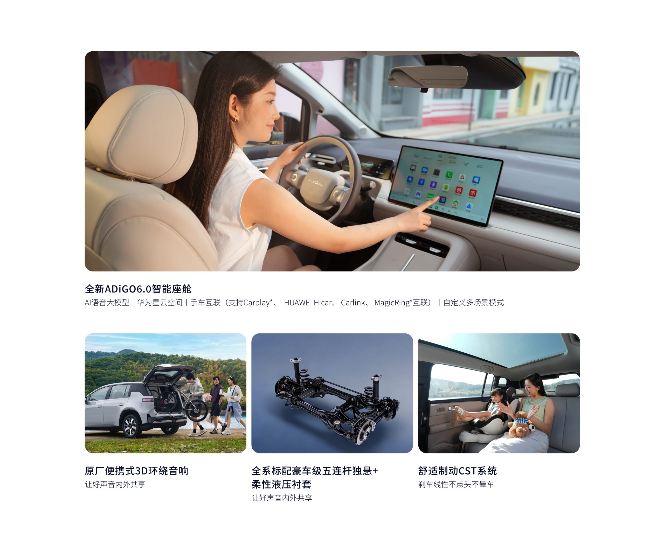 - ความสะดวกสบายอัจฉริยะ: ที่ชาร์จโทรศัพท์ไร้สาย 50W, ระบบเชื่อมต่อ Apple CarPlay / Huawei HiCar, ฝาท้ายไฟฟ้าพร้อมระบบบันทึกความสูง และไฟ Ambient Light สร้างบรรยากาศ
