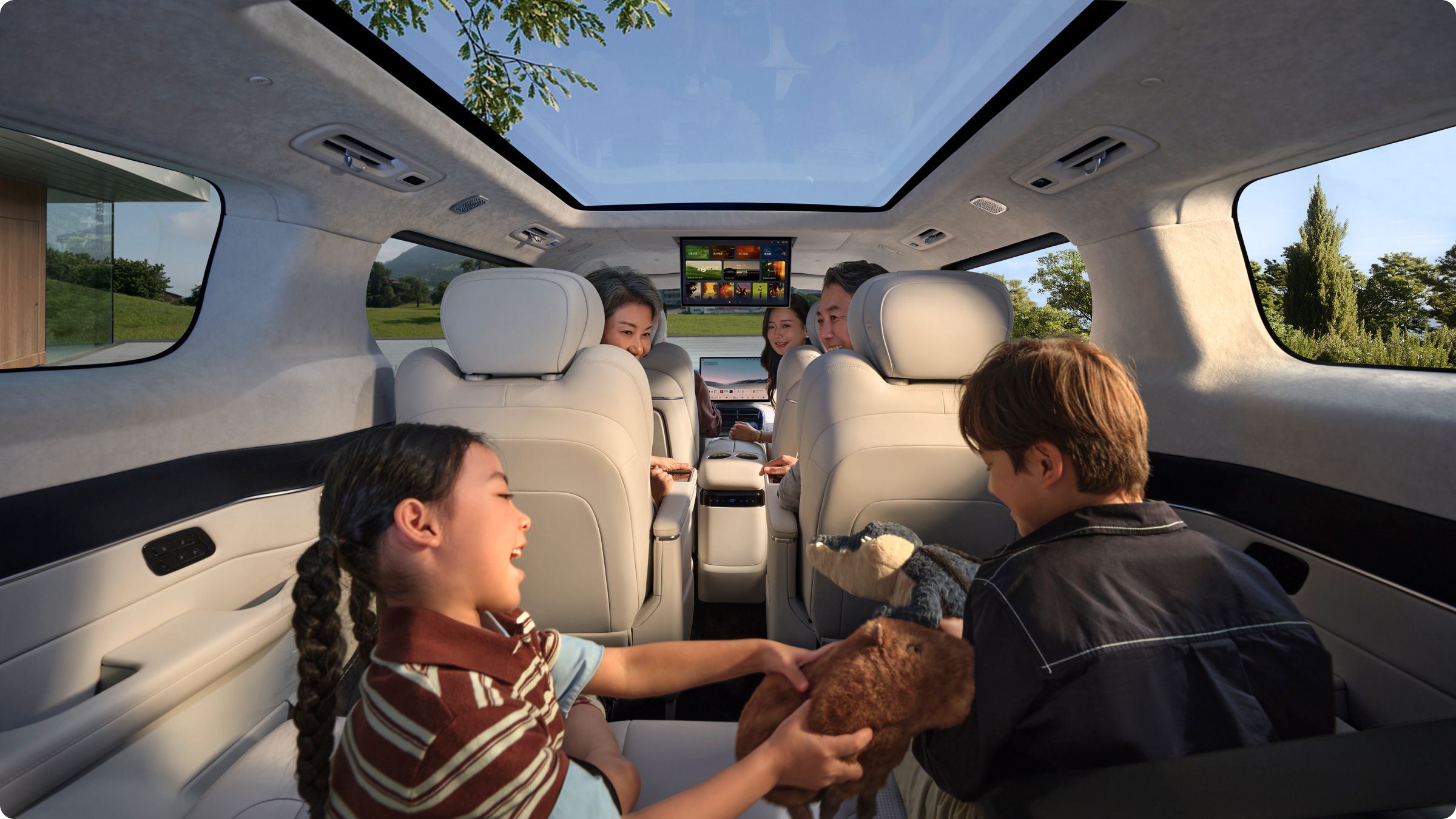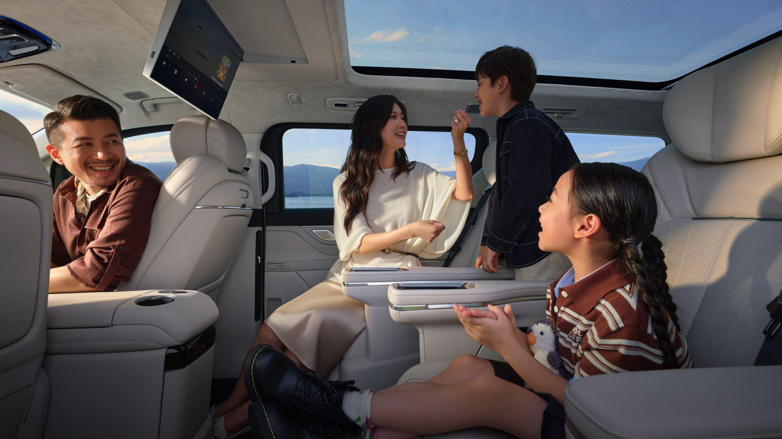 - แถวสองมีจอความบันเทิง 17.3 นิ้ว และจอควบคุมที่พนักวางแขน 5.98 นิ้ว